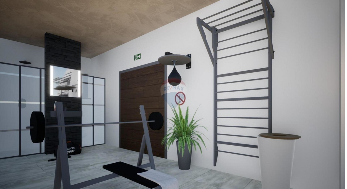 Im Untergeschoss gibt es einen Fitnessraum, einen Hobbyraum, einen Wellness-Raum, eine Toilette, einen Vorraum, ein Schlafzimmer und eine zusätzliche Garage von 41 m².