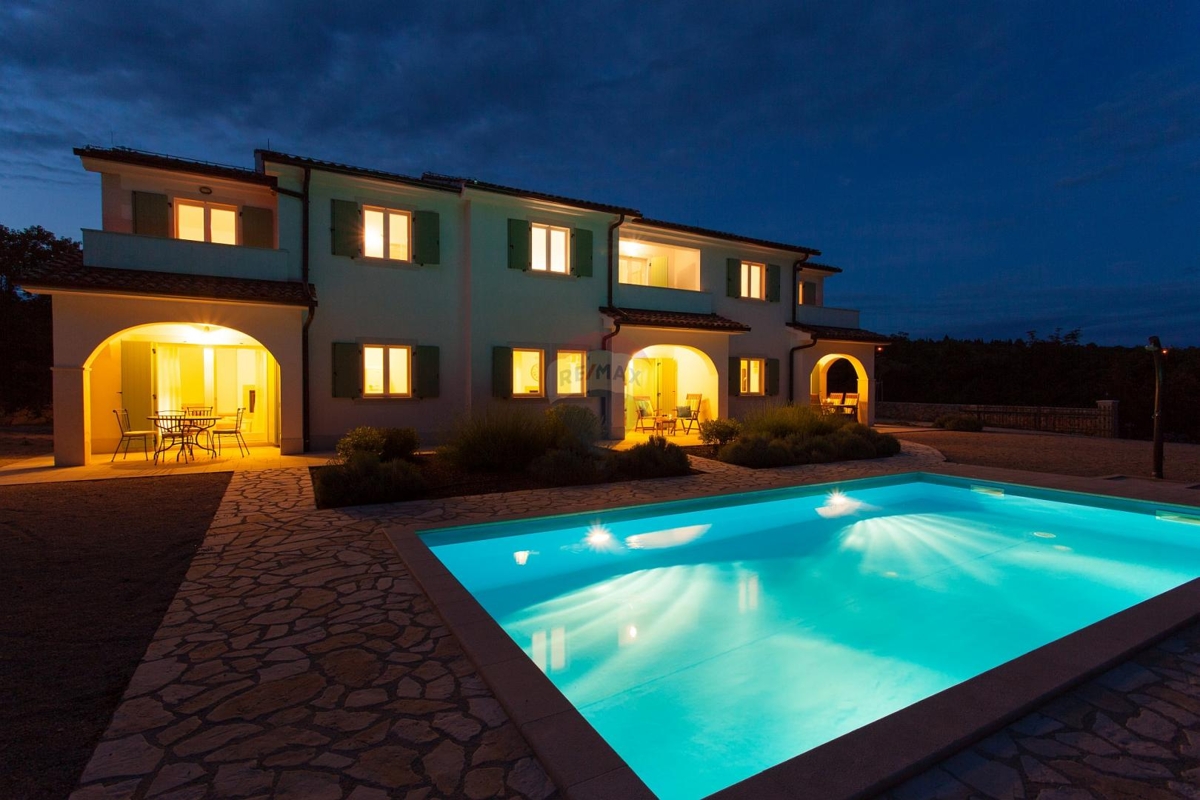 Insel Krk: Mediterrane Villa bestehend aus zwei Reihenend- und einem Reihenmittelhaus mitten im Grünen.Die von Natur umgebene Immobilie besteht aus drei separaten Häusern, die bedacht angelegt sind, sodass jede Partei ihre Privatsphäre genießen kann. Jede Wohnung hat Blick auf das große schön angelegte Grundstück mit Pool.