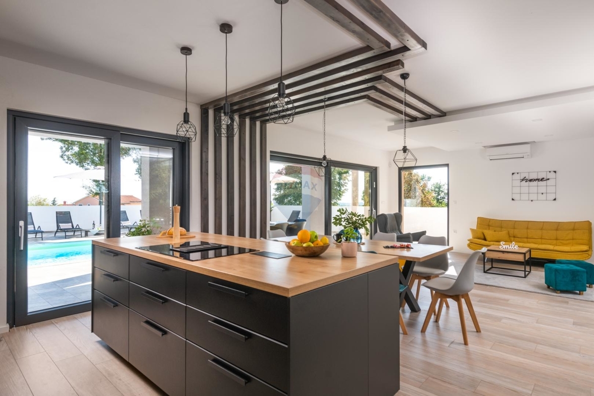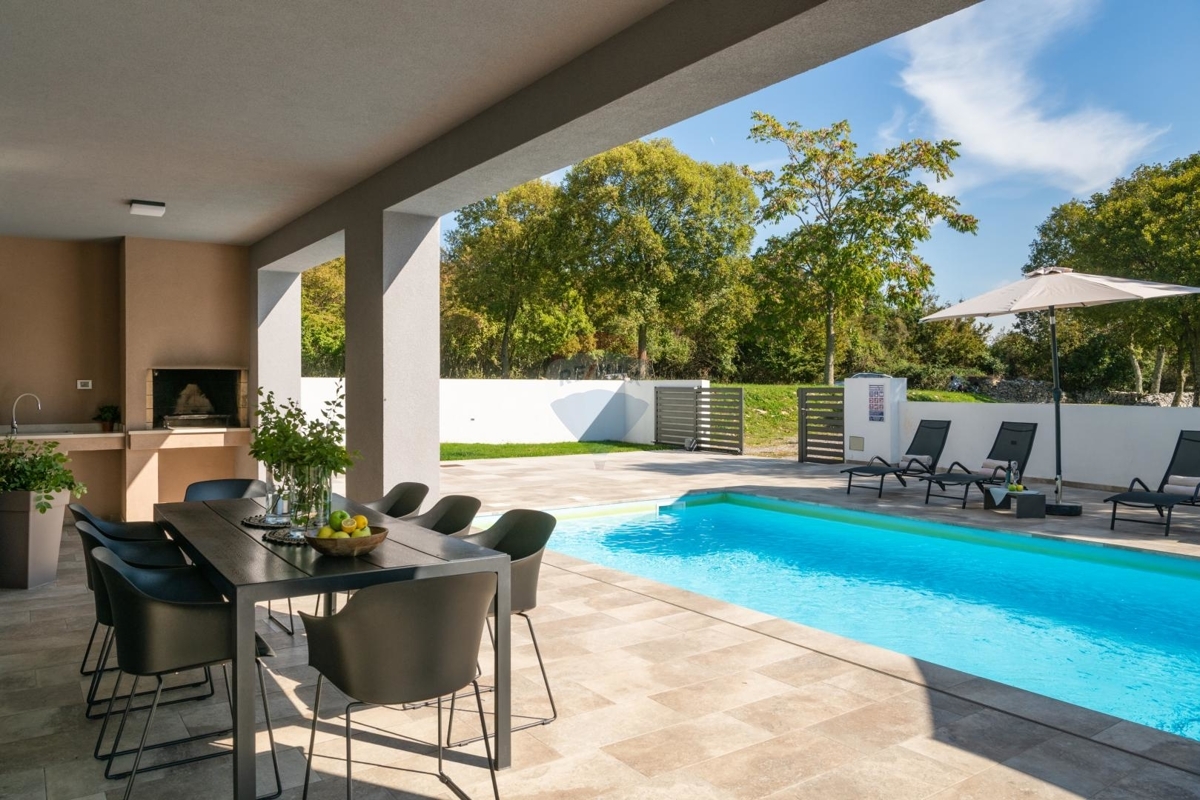 Der Außenbereich bietet einen 30 m² großen Pool mit Sonnendeck, eine Sommerküche mit Grill sowie eine Grünfläche. Das Grundstück ist komplett umzäunt und verfügt über einen 20m2 großen Abstellraum sowie zwei Außenstellplätze.