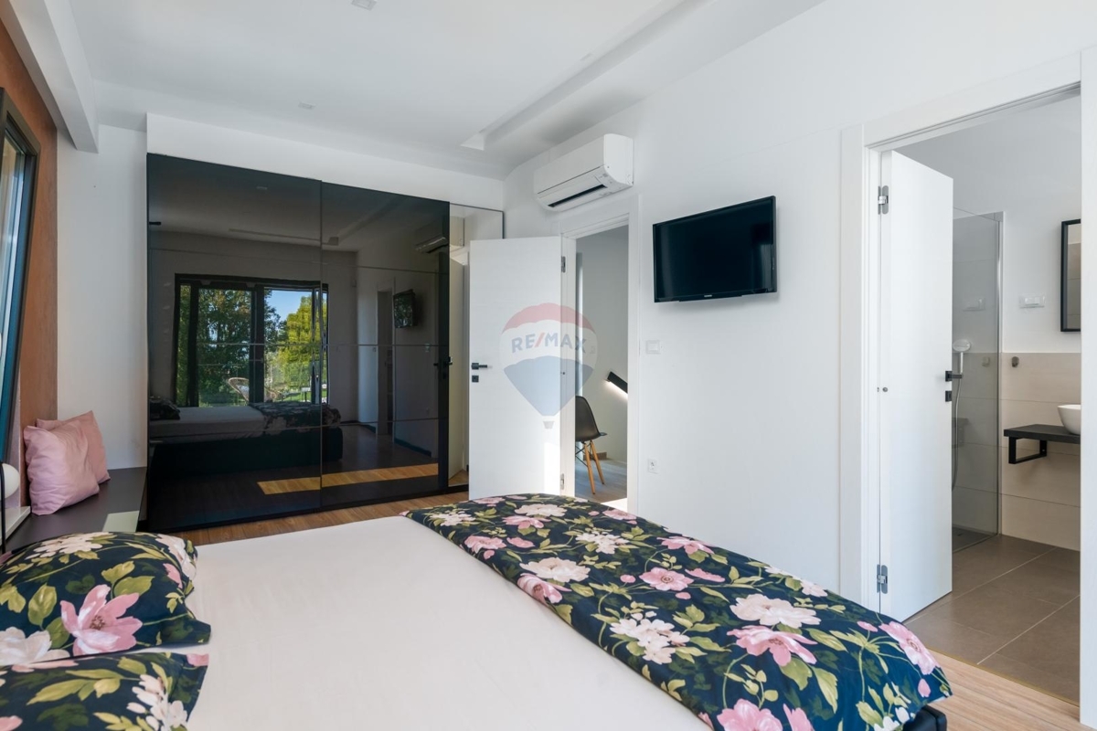 Drei Schlafzimmer jeweils mit eigenem Badezimmer befinden sich im Obergeschoss. Zwei Zimmer teilen sich eine gemeinsame Terrasse mit Blick auf das Meer und die umliegende Natur.