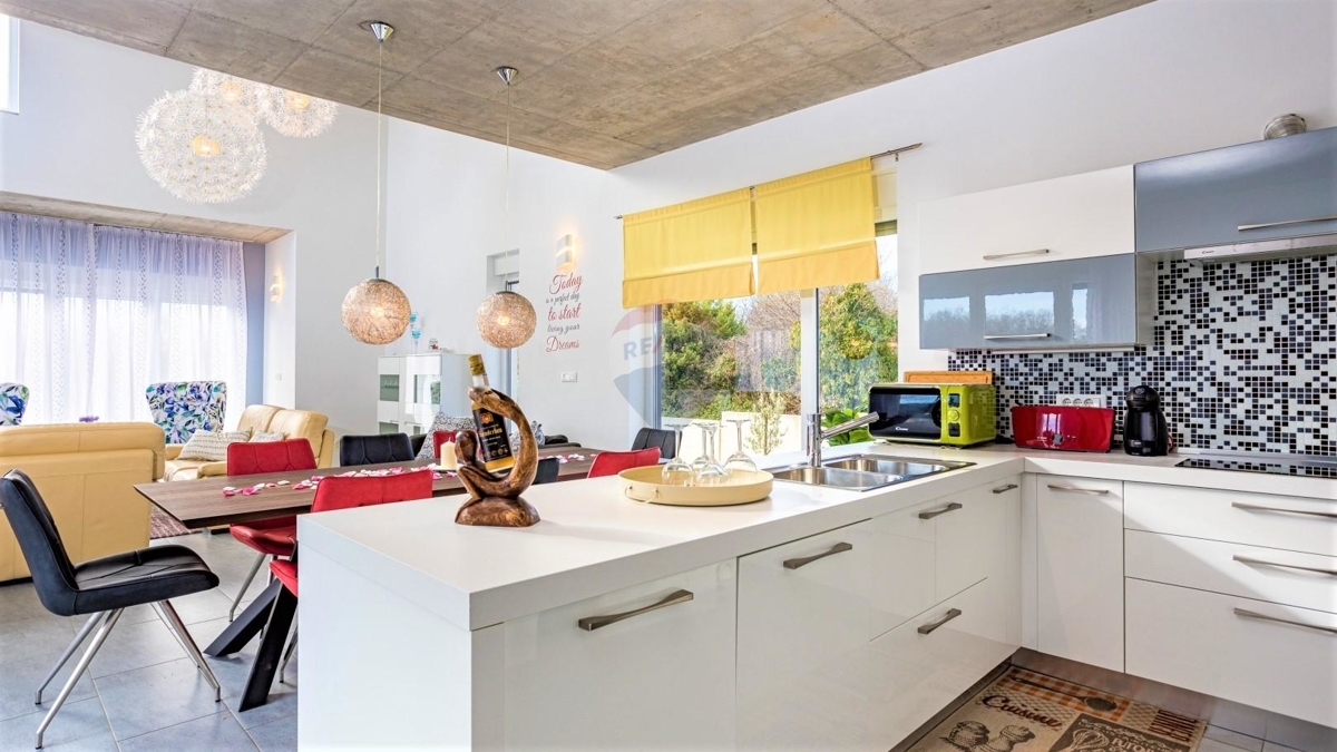 Diese luxuriöse, moderne Villa befindet sich in Nähe der Bucht von Rakalj. Die Randlage des Hauses bietet einen freien Blick auf die Natur sowie Privatsphäre und Ruhe.