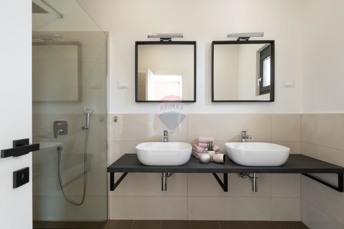 Drei Schlafzimmer jeweils mit eigenem Badezimmer befinden sich im Obergeschoss. Zwei Zimmer teilen sich eine gemeinsame Terrasse mit Blick auf das Meer und die umliegende Natur.