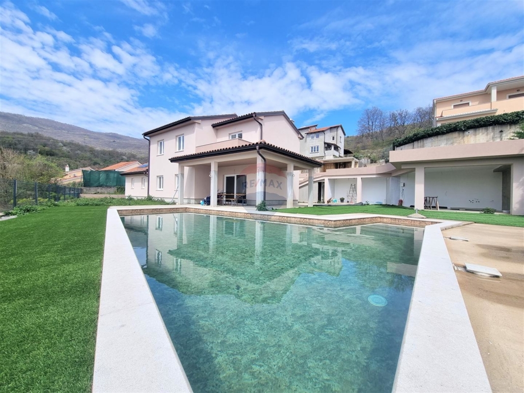 Dieses neue Ferienhaus befindet sich ruhig gelegen im Umkreis von Opatija. Es bietet Ihnen Ruhe und Privatsphäre mit einem tollen Ausblick aufs Meer.Im Erdgeschoss befindet sich der Wohn-Ess-Bereich mit Küche und Ausgang zum Außenbereich, ein Flur, eine Garderobe, eine Waschküche, ein Badezimmer sowie eine Sauna mit Fitnessbereich – dieser Bereich befindet sich aktuell noch im Rohzustand und könnte auch als ein viertes Schlafzimmer mit eigenem Bad gestaltet werden.