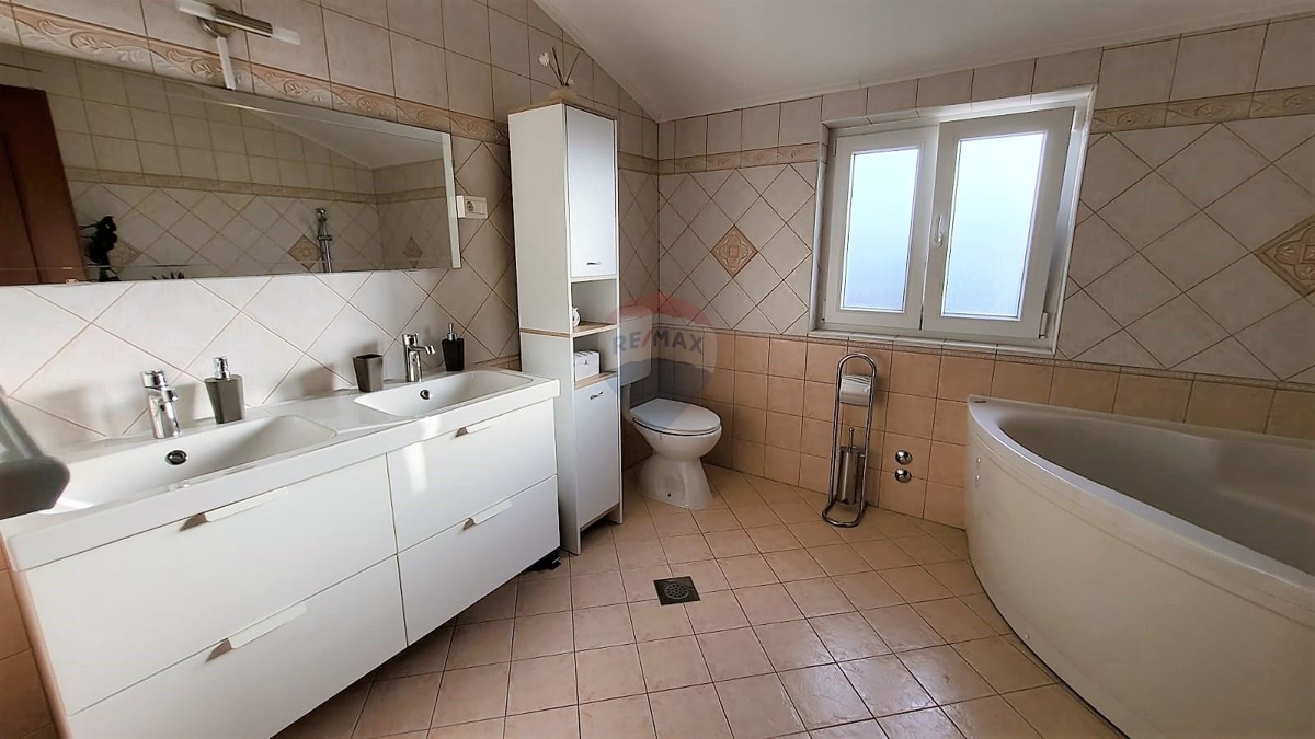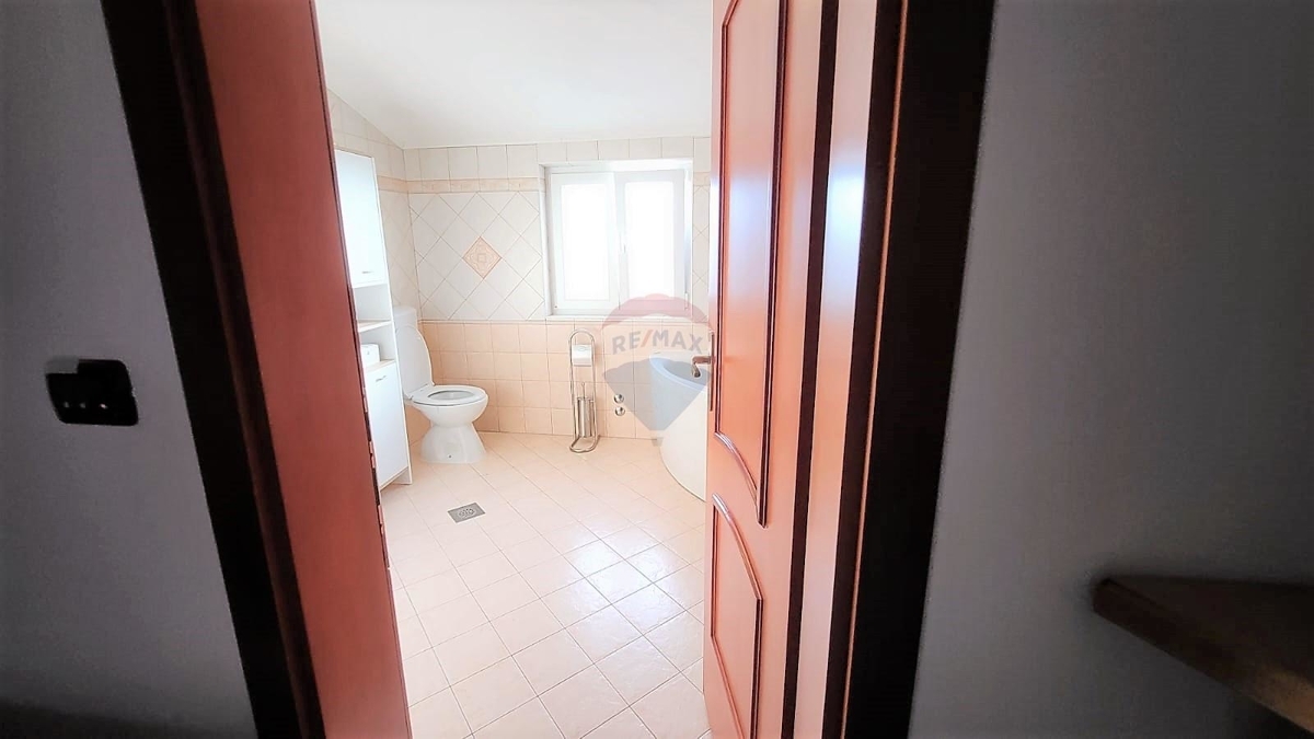 Das Obergeschoss bietet zwei Schlafzimmer und ein großes Badezimmer, ein weiteres Zimmer wird als Freizeitraum genutzt. Dieses Zimmer führt zu einer großen Terrasse mit herrlichem Blick auf das Meer.