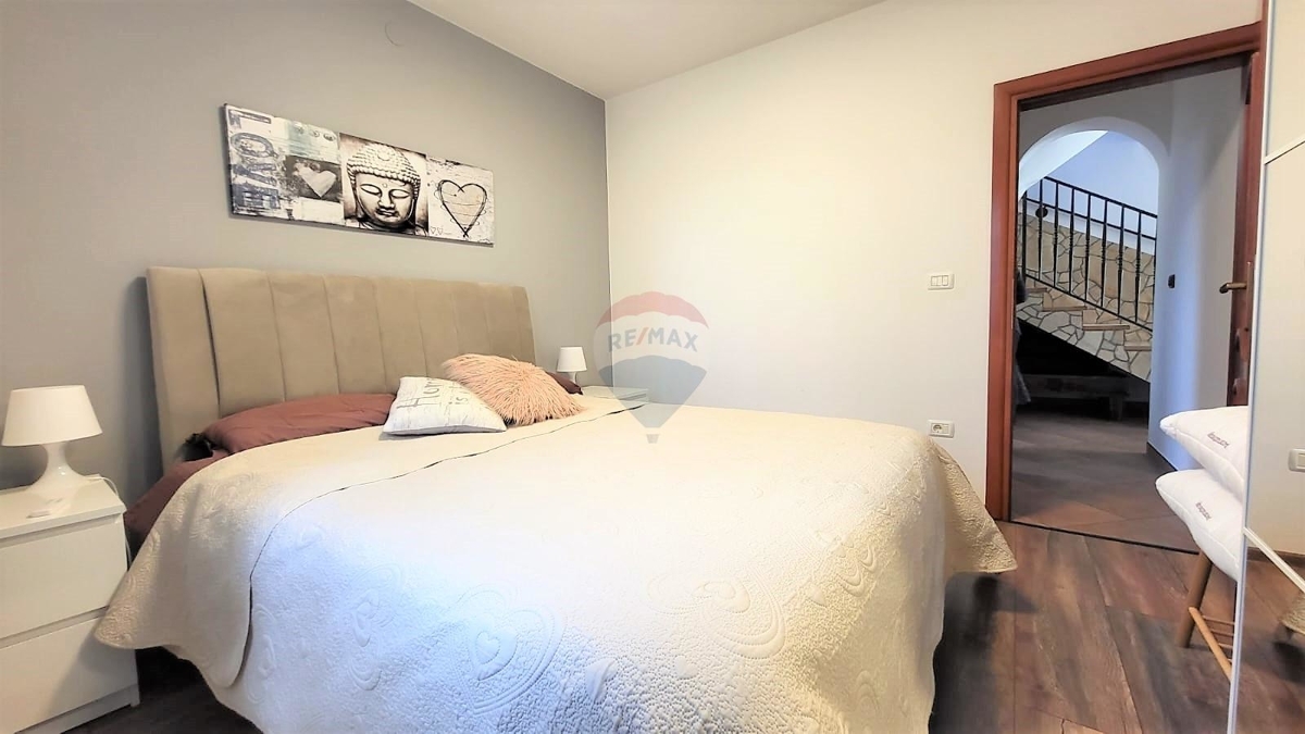 Dieses Haus befindet sich in der nahem Umgebung von Umag. Das große und herrlich grün bewachsene Grundstück bietet Ihnen Ruhe und Privatsphäre.Im Erdgeschoss befindet sich ein großer Wohn-Ess-Bereich mit Küche und Speisekammer, sowie ein Schlafzimmer und ein Badezimmer.