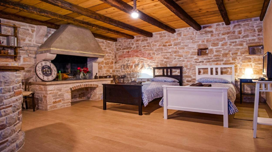 Diese wunderschöne Steinvilla befindet sich in einem ruhigen Ort zwischen Bale und Rovinj. Die ruhige Lage bietet Ihnen einen Rückzugsort und Privatsphäre.Das Erdgeschoss bietet einen offenen Wohn-Ess-Bereich mit Küche, einem Schlafzimmer mit Badezimmer und eine Abstellkammer.