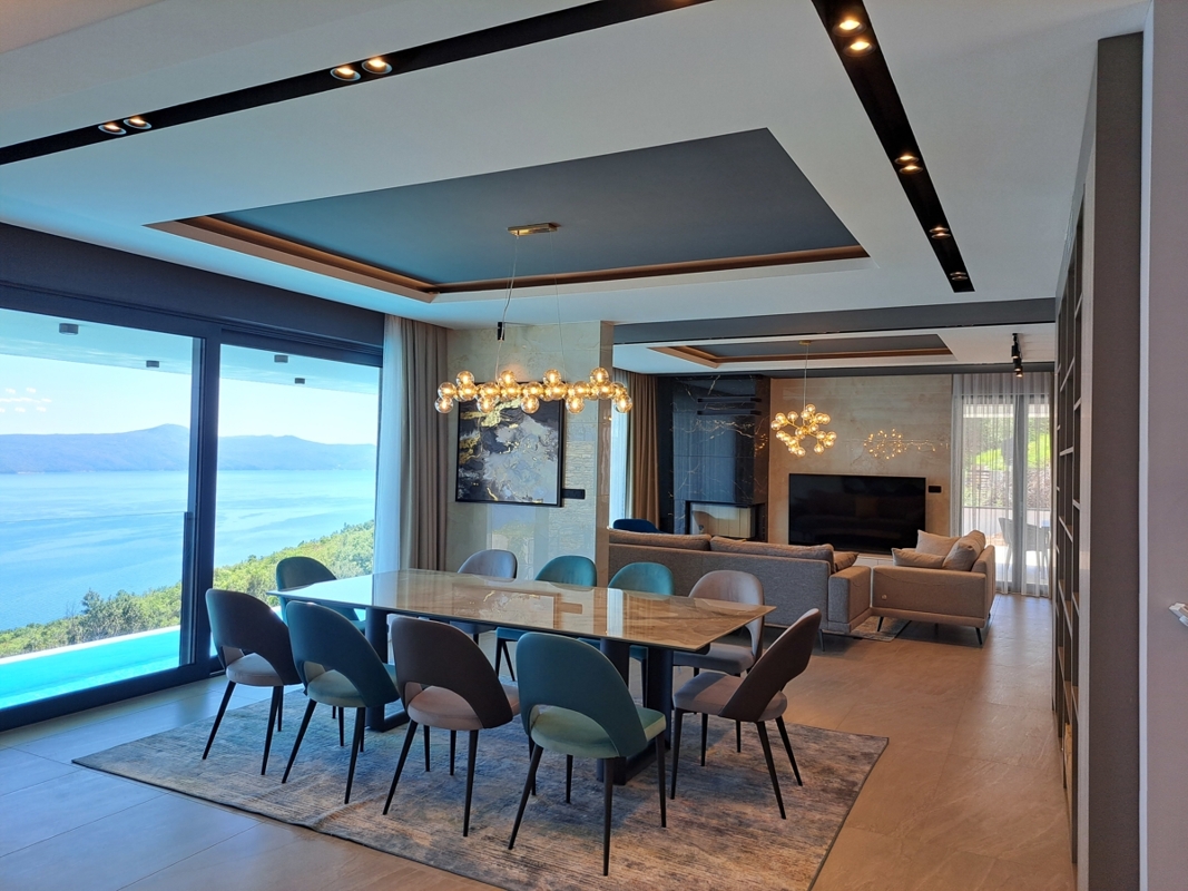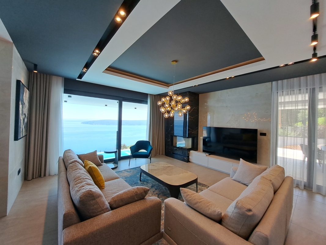 Moderne Neubauvilla mit Infinity-Pool an der westlichen Kvarner Bucht