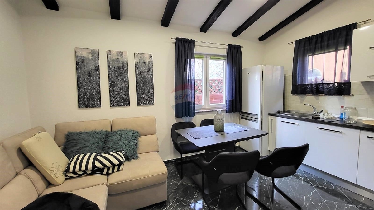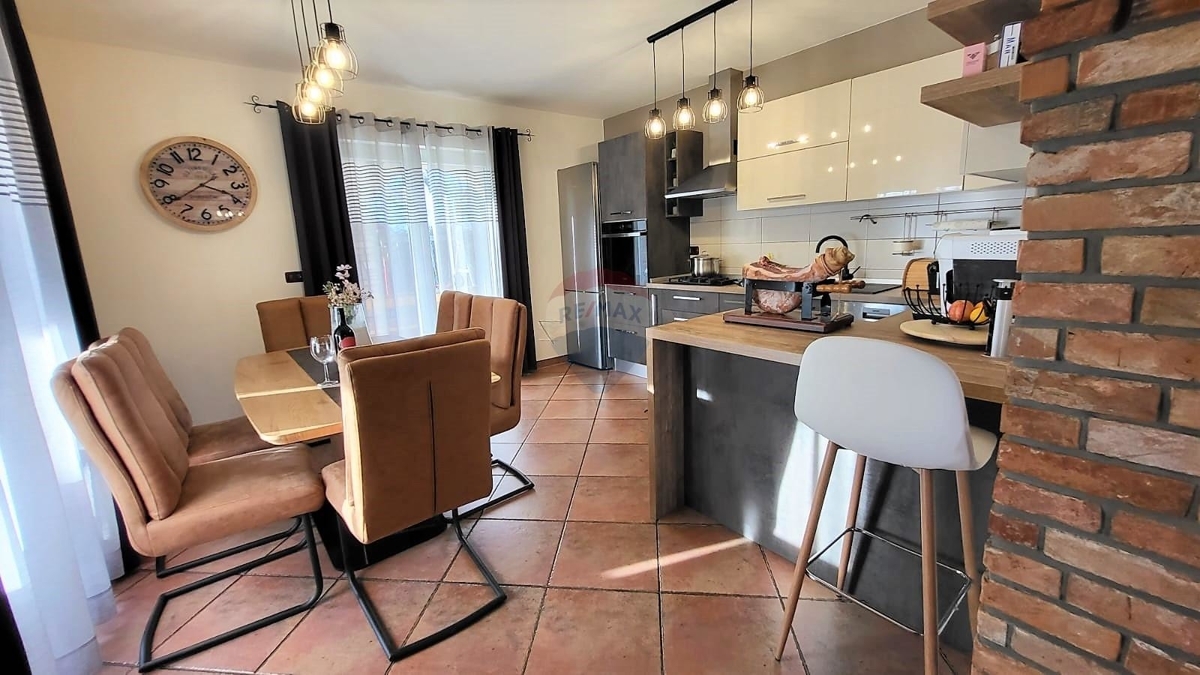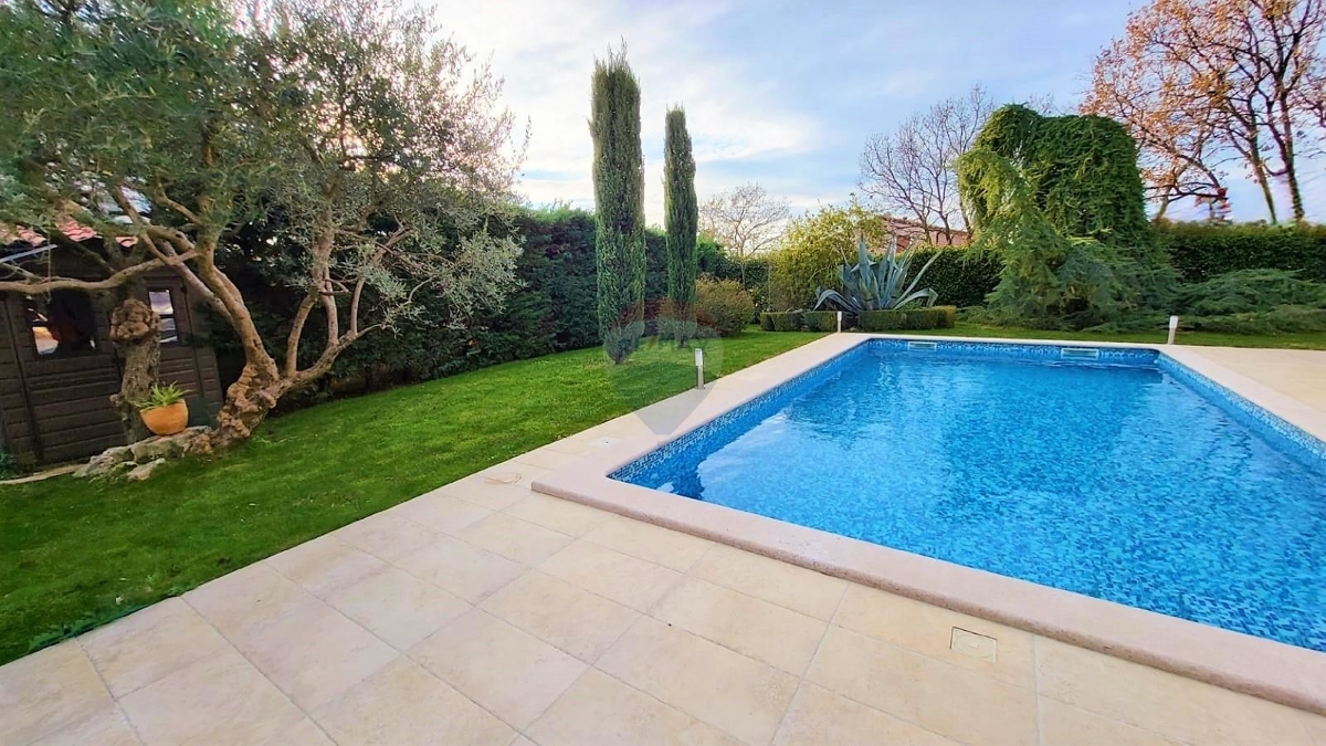 Dieses Haus befindet sich in der nahem Umgebung von Umag. Das große und herrlich grün bewachsene Grundstück bietet Ihnen Ruhe und Privatsphäre.Im Erdgeschoss befindet sich ein großer Wohn-Ess-Bereich mit Küche und Speisekammer, sowie ein Schlafzimmer und ein Badezimmer.