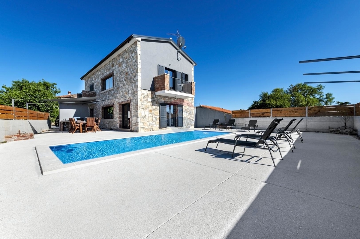 Östlich von Rovinj gelegen befindet sich diese schöne und moderne Stadtvilla und bietet Ihnen einen Rückzugsort mit viel Privatsphäre, fernab der turbulenten Hafenstädte.Im Erdgeschoss dominiert der offene und große Wohn-Ess-BBereich mit Kamin und Küche, sowie ein Schlafzimmer und ein Badezimmer.