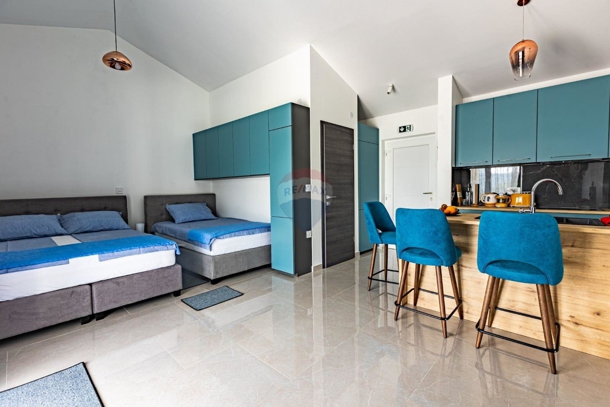 Das Nebengebäude besteht aus einem großen Fitnessraum, der auch noch genügend Platz für den Wellnessbereich bietet, einem Bad und einem Raum mit einer großer Küche - für beispielsweise Kochkurse oder für ein weiteres Studio-Apartment.