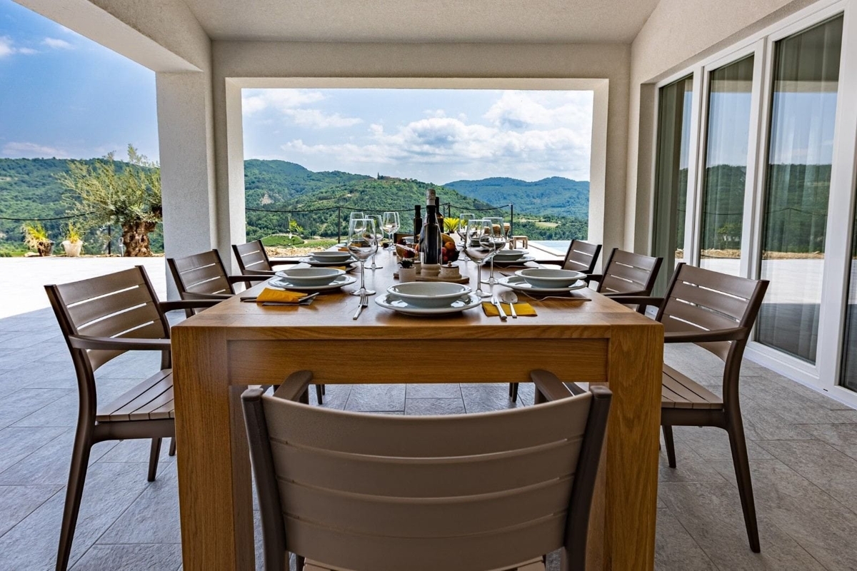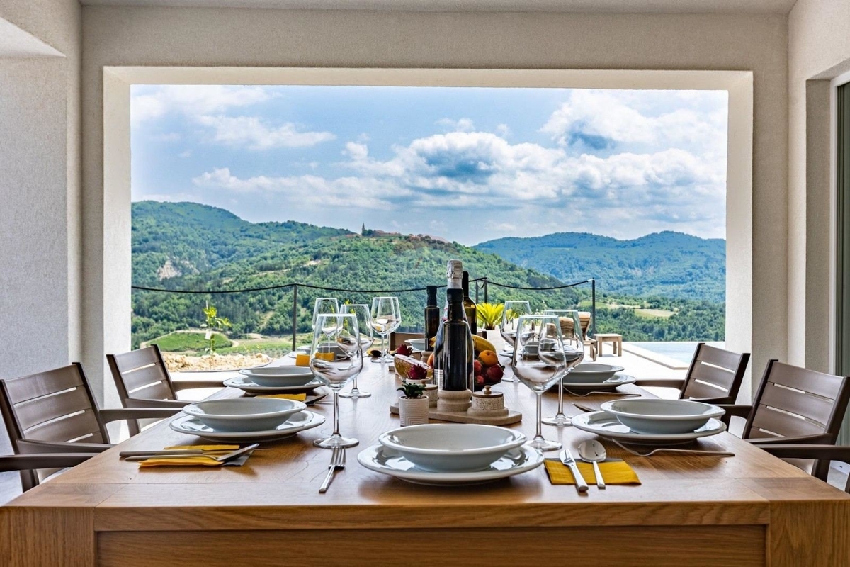 In einer zauberhaft idyllischen Lage – an einem Hang der malerischen Hügellandschaft liegt dieses besondere Anwesen.Das Anwesen liegt zwischen Buzet und Cerovlje, jeweils etwa 12 km davon entfernt. Das erste Restaurant finden Sie in Draguc, etwa 7 km entfernt.