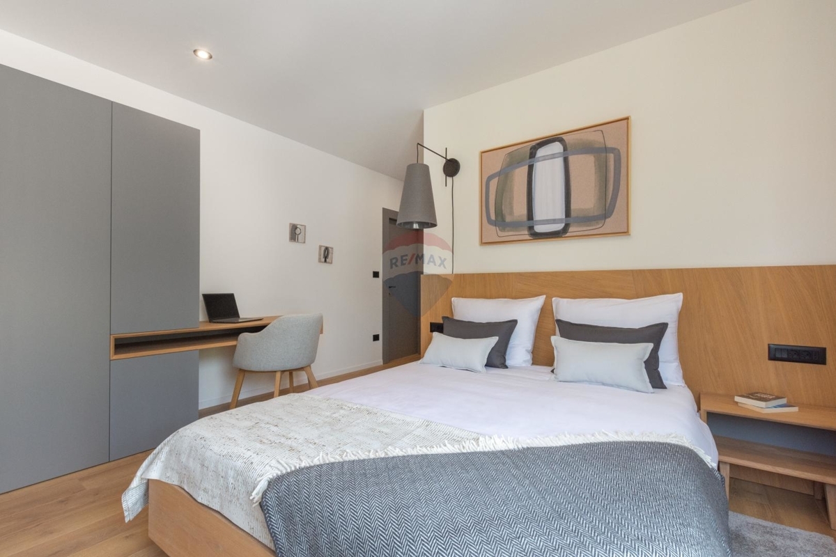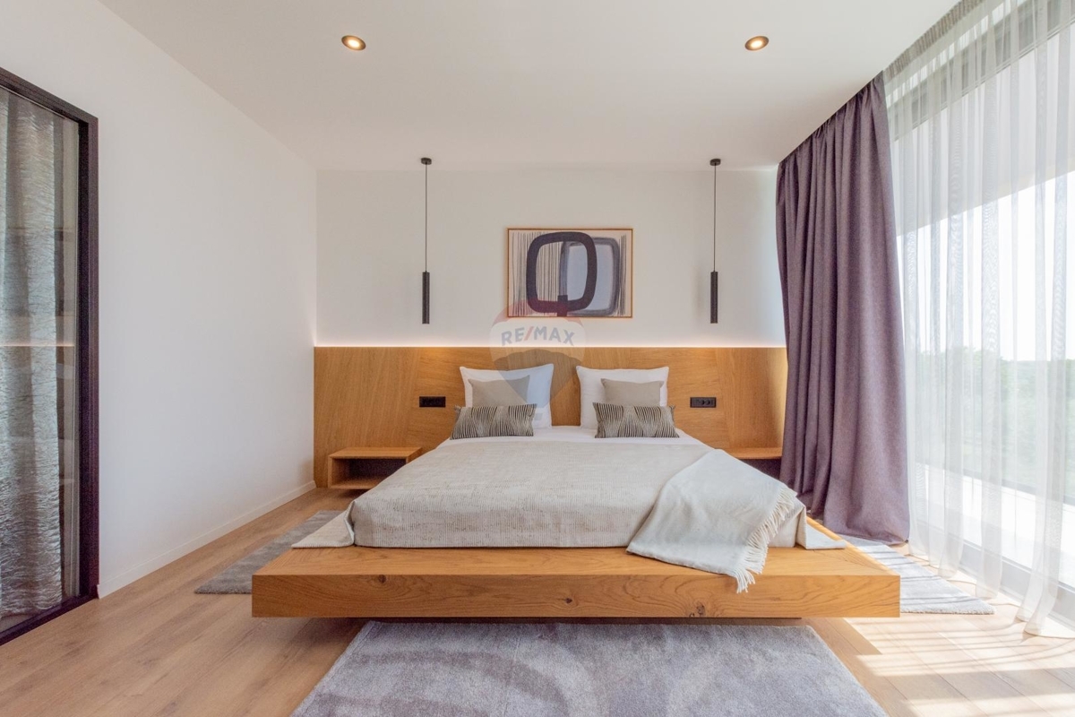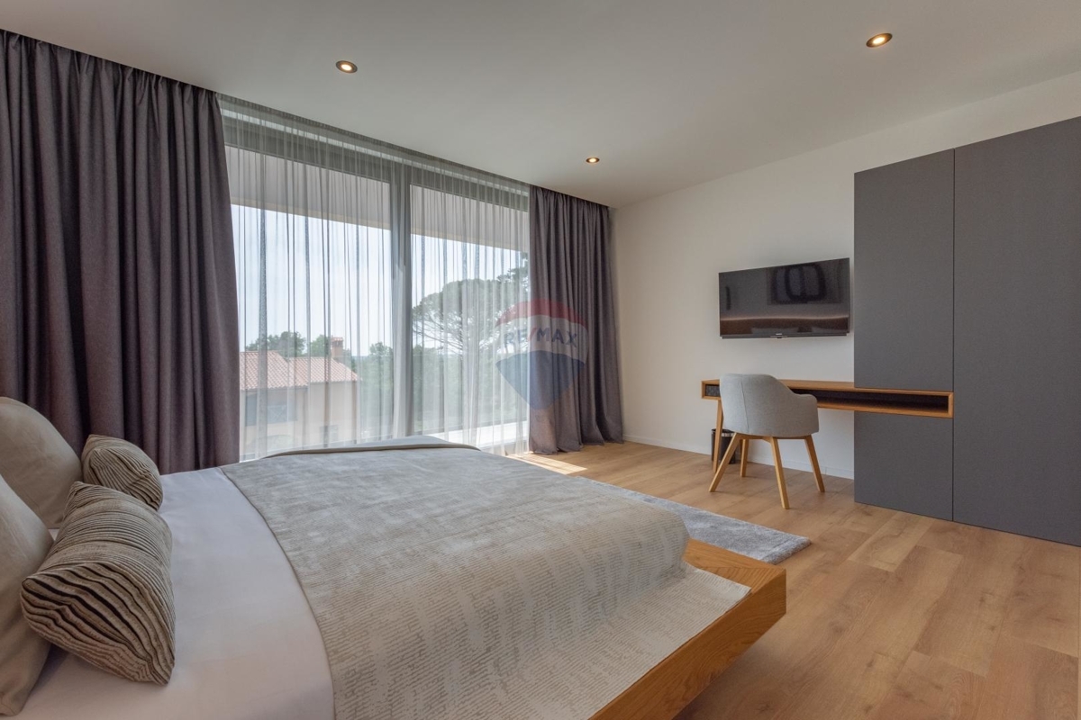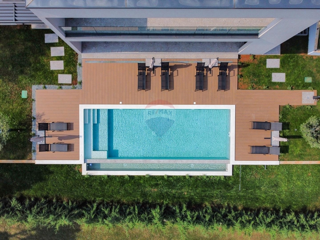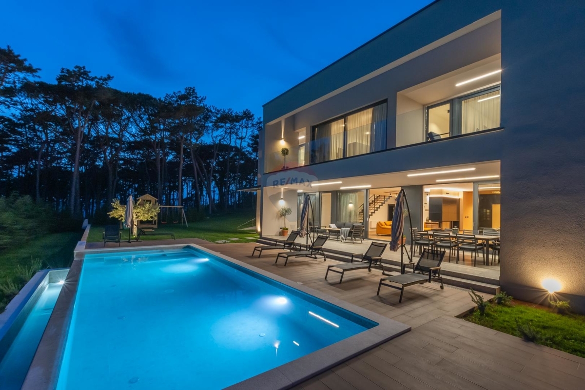Diese moderne Villa befindet sich an der Ostküste Istriens, nah bei Rabac und Labin und bietet Ihnen absolute Privatsphäre in einer ruhigen Umgebung.Da sich das Haus in Hanglage befindet ist der Haupteingang auf der Nordseite des Hauses im Obergeschoss. Dieses verfügt über einen Loungebereich und vier Schlafzimmern jedes davon mit eigenem Badezimmer und eigenem Balkon mit Meerblick.