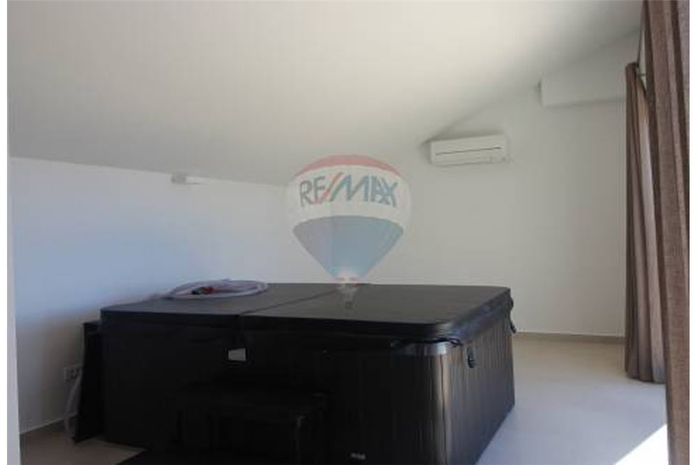 Auf der zweiten Etage erwartet Sie ein Masterbedroom mit eigenem Bad, ein Abstellraum, Wellnessbereich mit Sauna und Jacuzzi sowie eine große Terrasse mit sensationellem Ausblick auf die Altstadt von Rovinj und das Meer.