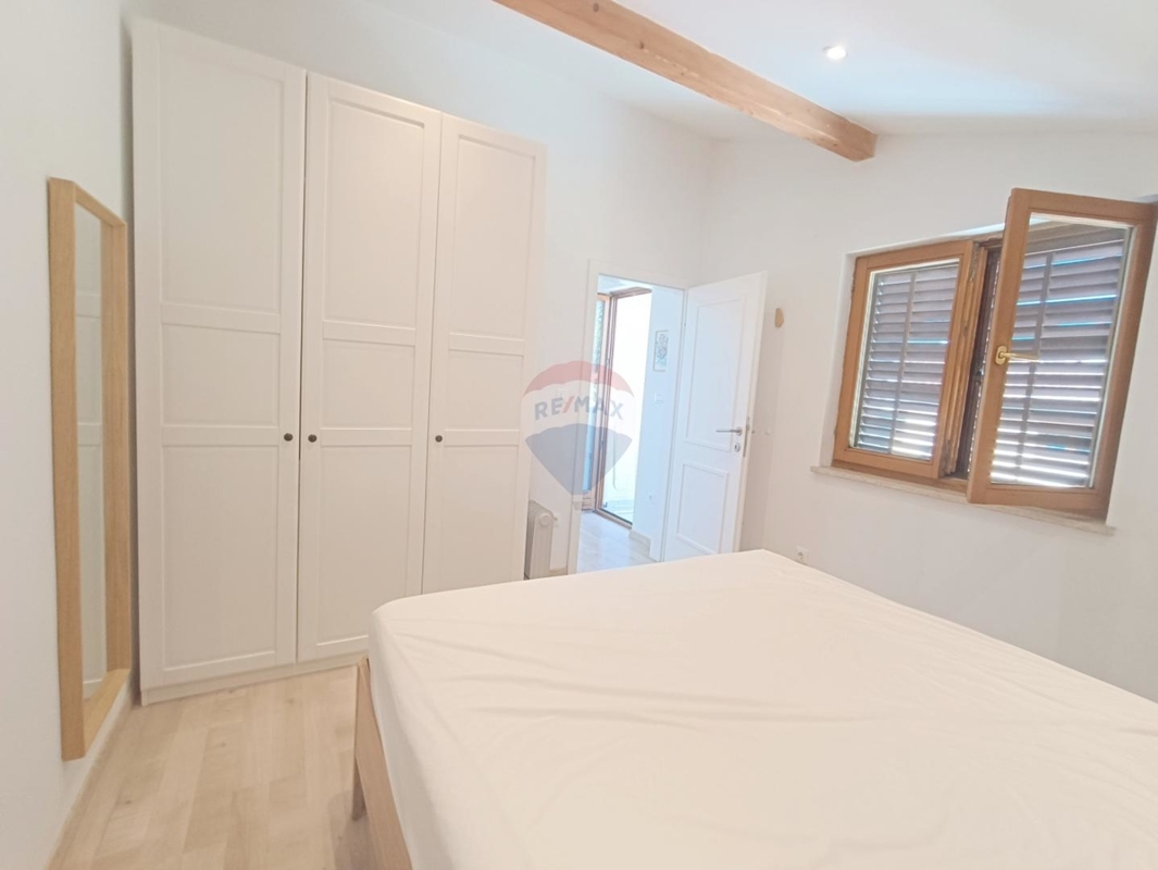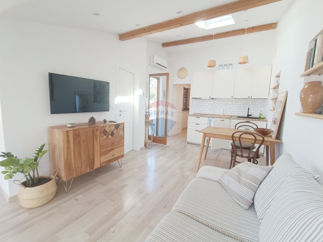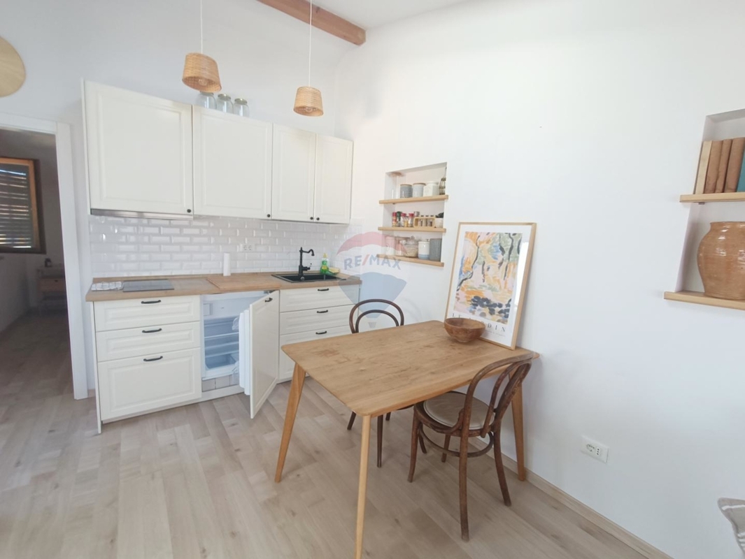 Diese wunderschöne Wohnung befindet sich in der schönen malerischen Küstenstadt Rovinj. Sie wurde 2023 vollständig renoviert.Im ersten Stockwerk eines kleineren Gebäudes verfügt die Wohnung über einen Eingangsbereich, einem Schlafzimmer, einem Badezimmer, einen offenen Wohn-Ess-Bereich mit Küche und einem Balkon.