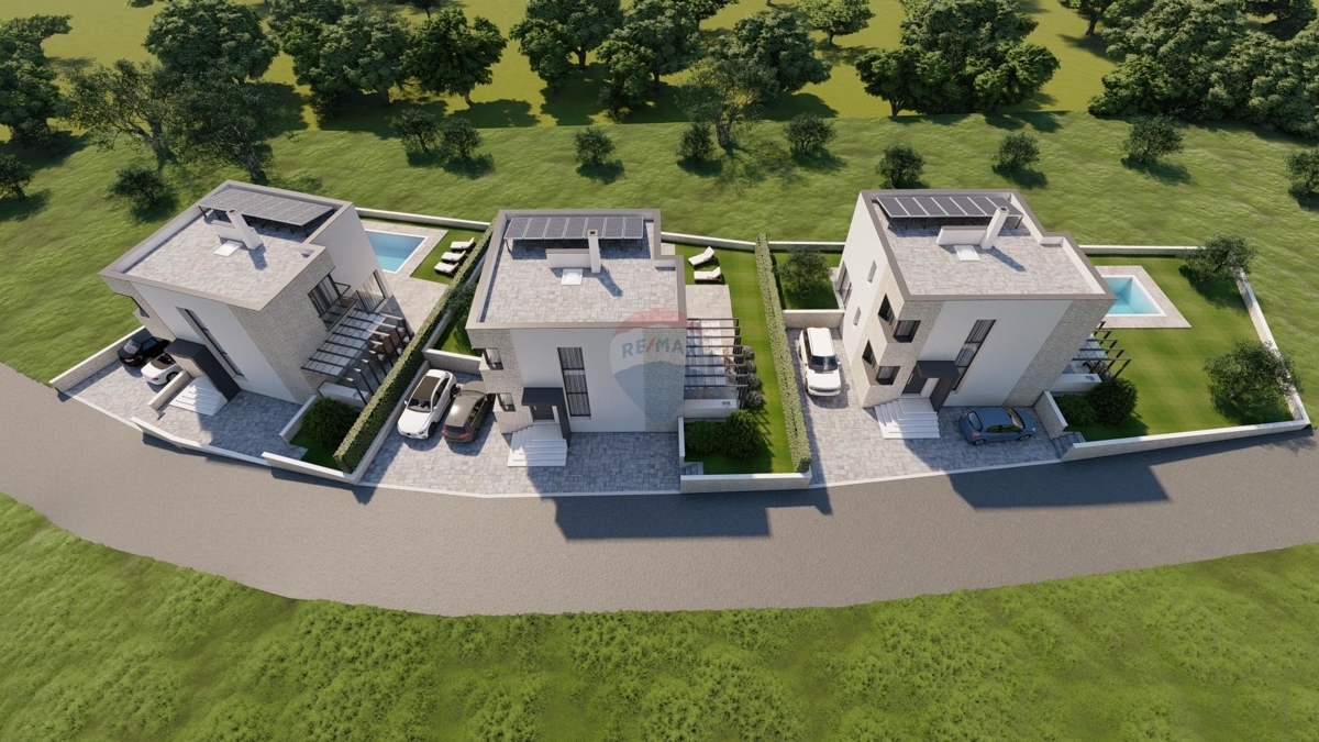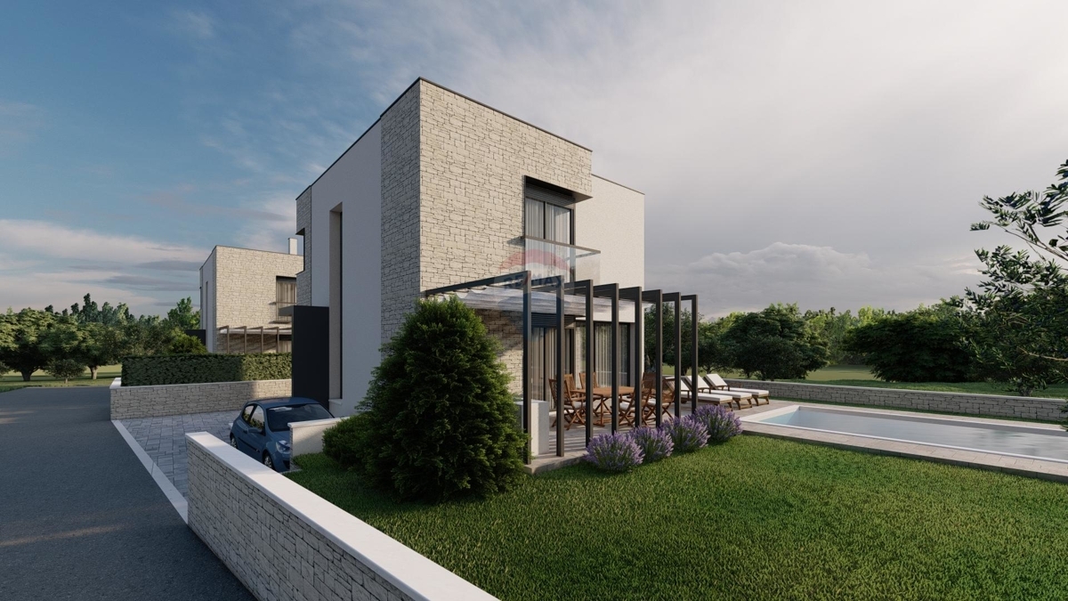 In Brtonigla - einer malerischen Weinberg-Gegend entsteht diese moderne Villa.Das Bauprojekt wird nach dem Prinzip schlüsselfertig angeboten, die Immobilien wird dementsprechend einzugsbereit ohne Mobiliar übergeben.