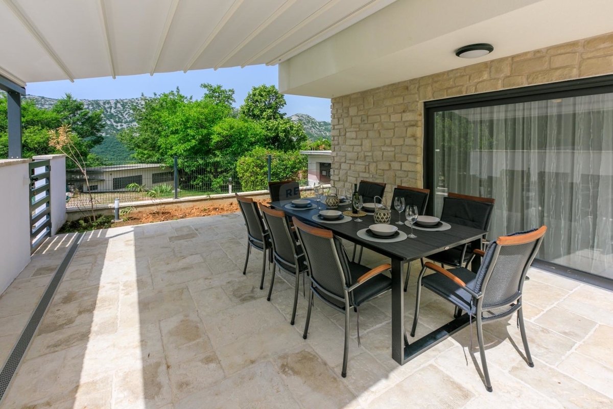 Diese wunderschöne Villa befindet sich in einem ruhigen Vorort von Crikvenica und bietet Ihnen Privatsphäre und Ruhe.Im Erdgeschoss befindet sich ein großer offener Wohn-Ess-Bereich mit Zugang zum Außenbereich und ein Gäste-WC.