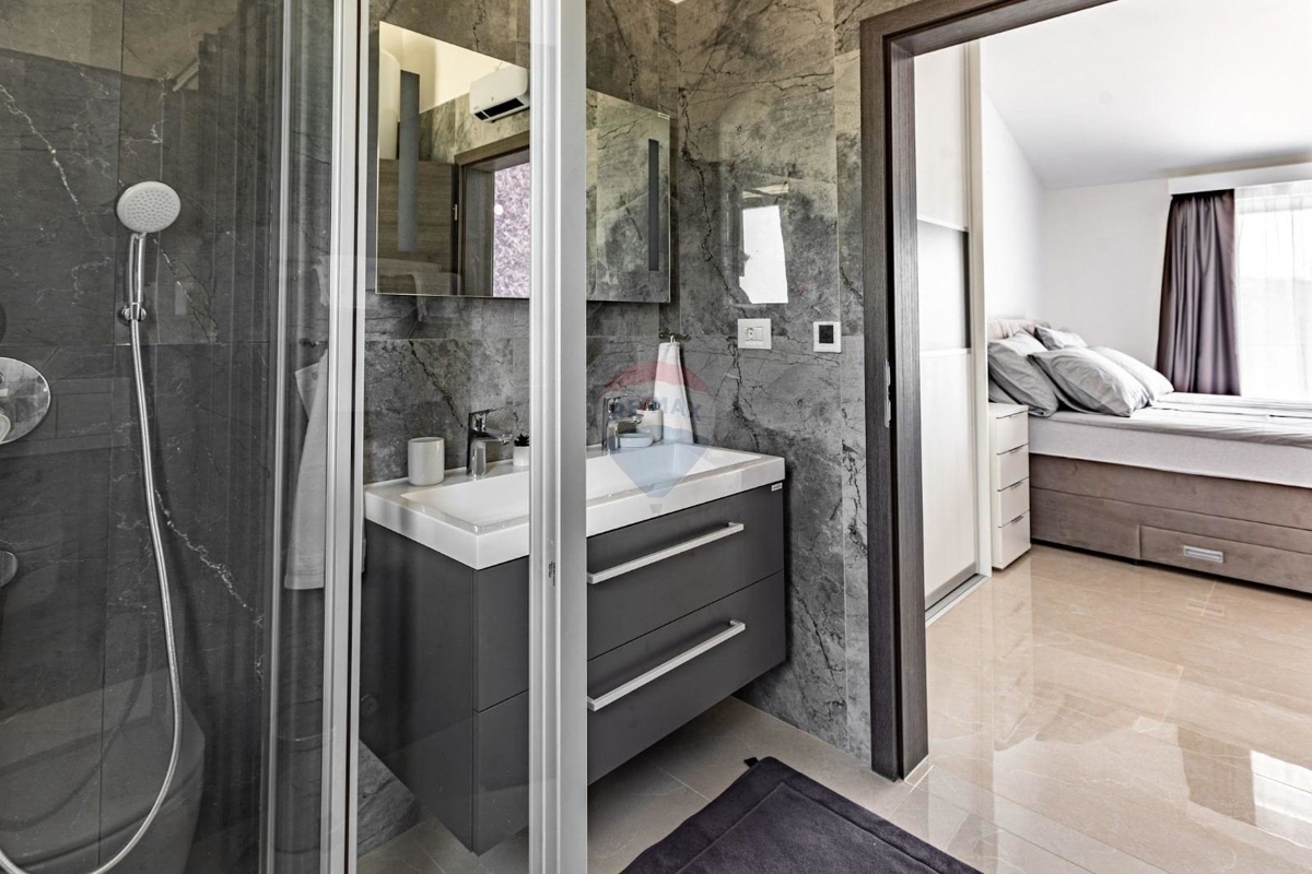 Im Obergeschoss erwarten Sie zwei geräumige Schlafzimmer, jedes mit eigenem Bad und Zugang zur großen Terrasse mit Panoramaausblick.