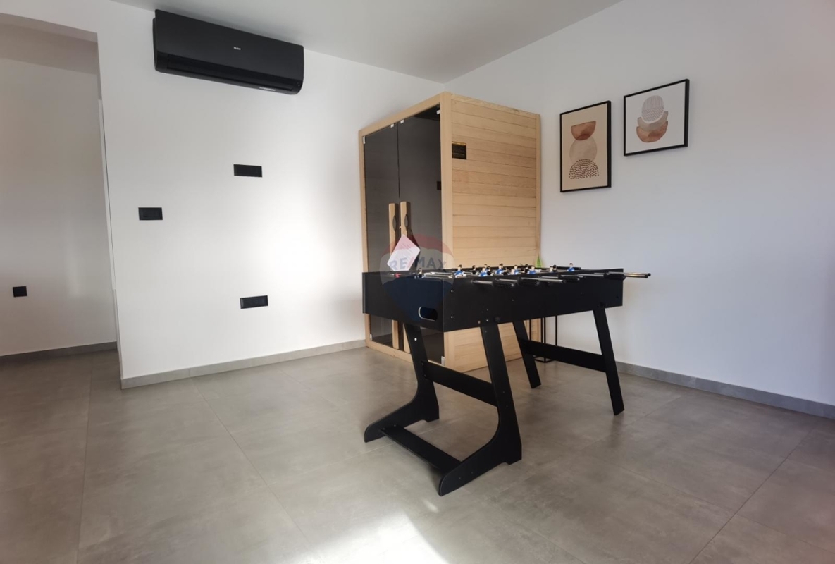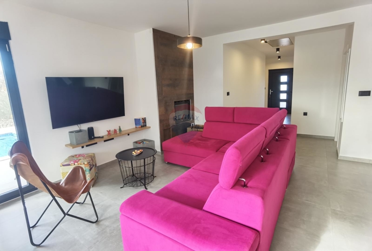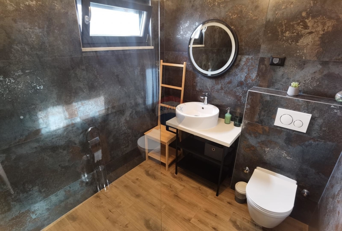 In einer ländlichen Umgebung von Labin liegt dieses zeitlose Ferienhaus. Es befindet sich am Rand eines kleinen Dorfs in der Nähe von Barban.Auf einer Etage sind die Wohnräume verteilt. Der Eingangsbereich trennt die Räumlichkeiten, die Schlafzimmer und der Wohnbereich voneinander. Die Räume sind stilvoll eingerichtet, sogar mit originalen Gemälden der renommierten, regionale Künstlerin Mirna Sisul.