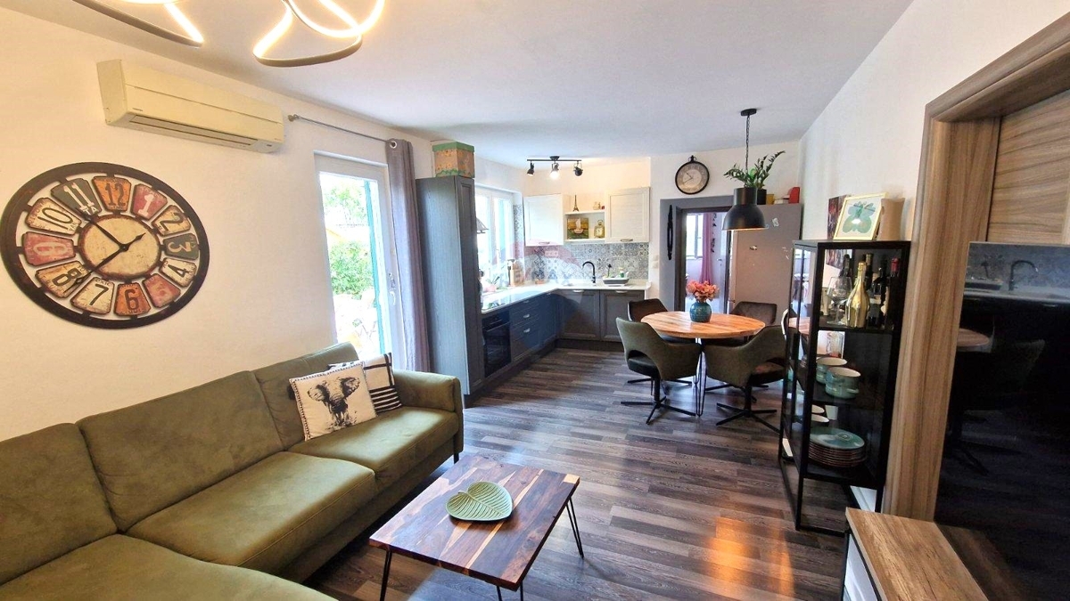 In einer hervorragenden Lage – direkt in der Stadt Krk liegt diese charmante Wohnung. Sie befindet sich in einem Haus mit insgesamt 7 Wohneinheiten.Der gut konzipierte Grundriss bietet Ihnen ein gemütliches Wohn- und Essbereich mit Küche, zwei Schlafzimmern und ein Bad. Von Wohnzimmer aus gelangen Sie auf die große überdachte Terrasse sowie zum Gartenanteil von 30 m².