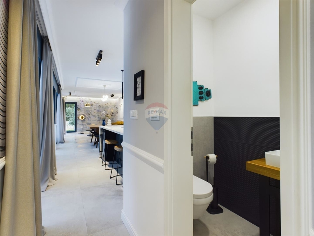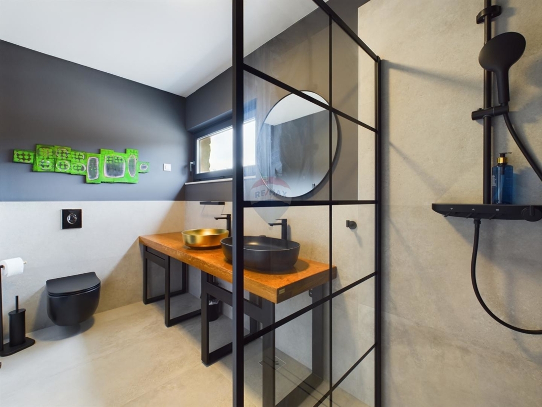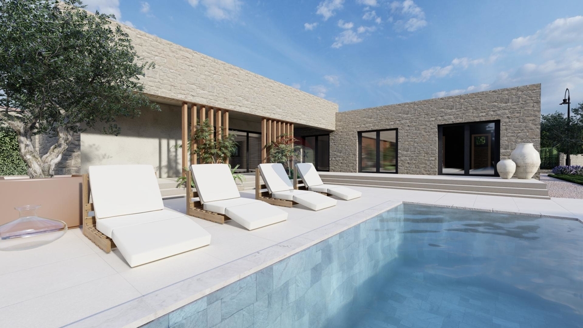 Wir stellen ein raffiniertes Bauprojekt einer modernen und eleganten Villa, in einer idyllischen Naturumgebung. Dazu sorgt das Grundstück mit 940 m2 für Privatsphäre.Das Interieur-Design ist von bekannter kroatischer Künstlerin und Innenarchitektin Mirna Sišul bis ins Detail entworfen. Mit ihrem einzigartigen Dekorationsstil hat Sie ein Ambiente geschaffen, der Fröhlichkeit und Lebensfreude ausstrahlt und gleichzeitig luxuriöse Eleganz bewahrt.