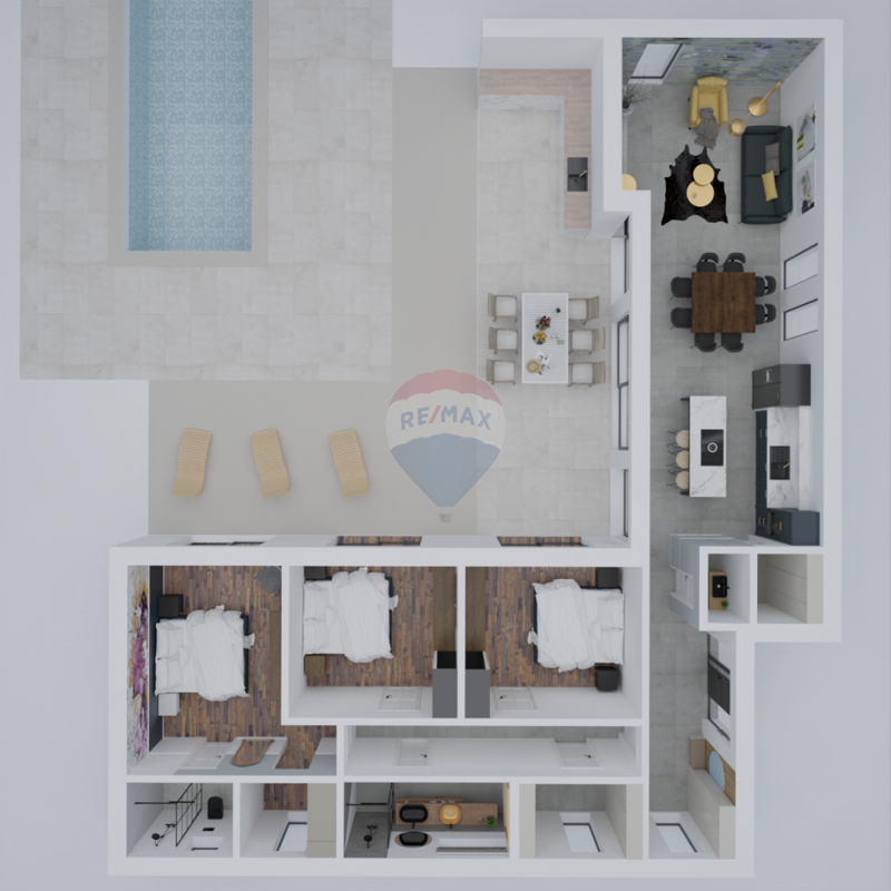 Auf 147 m² befinden sich ein geräumiges, Open Space Wohn und Essbereich mit Küche, drei Schlafzimmer, zwei elegante Badezimmer und ein separates WC. Ein Schlafzimmer hat eigenes Bad und Ankleide. Jedes Zimmer ist mit Liebe zum Detail eingerichtet und vermittelt Ihnen ein Gefühl von Wärme und Komfort. Die geräumige Küche mit Essbereich ist dabei als zentraler Teil des Hauses konzipiert und mit modernster Technik ausgestattet.