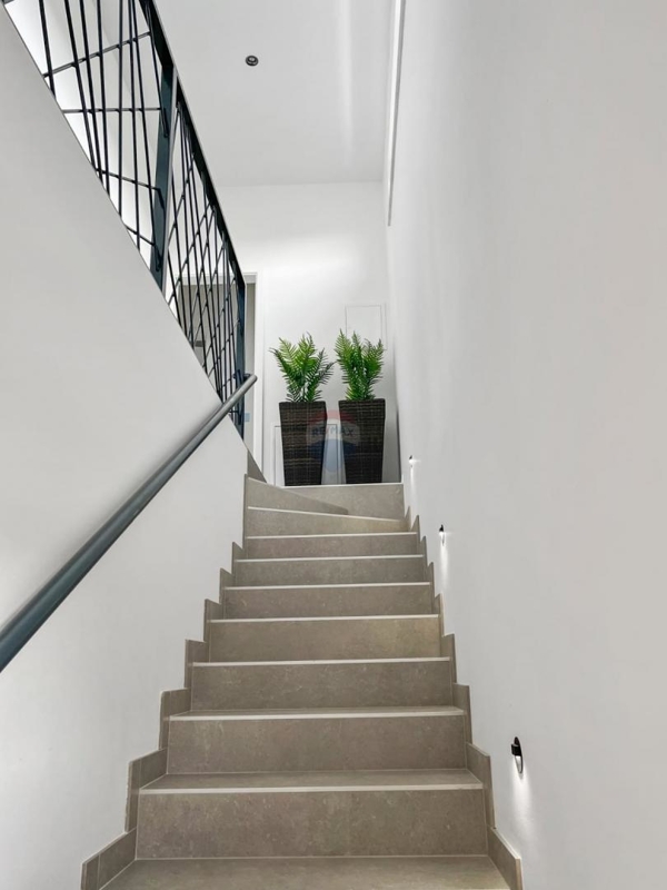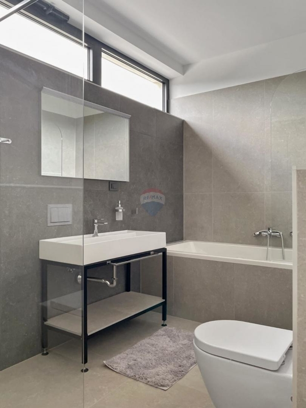Im Erdgeschoss dominiert das große Wohnbereich, nach open space Prinzip – geräumige Küche, Essbereich und Wohnbereich. Nebendran ist ein Schlafzimmer mit eigenem Bad sowie eine separate Toilette.