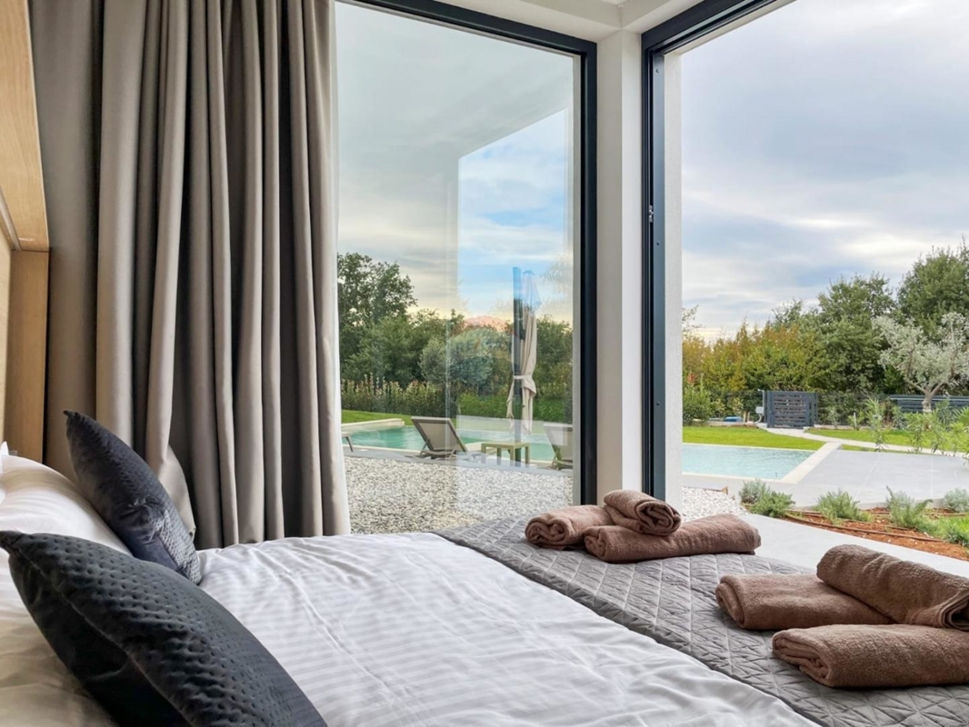 In einem ruhigen und kleinen Dorf in Umgebung von Porec liegt diese stilvolle Villa.Die Gesamtfläche von 230 m² verteilt sich auf drei Etagen: Keller, Erdgeschoss und Obergeschoss.