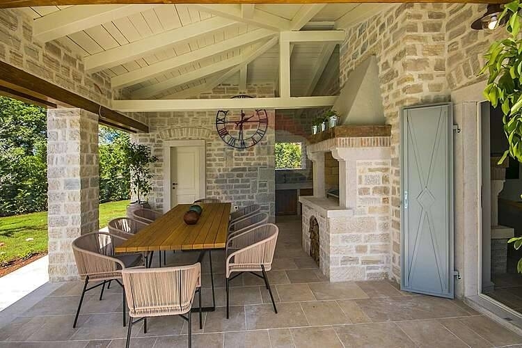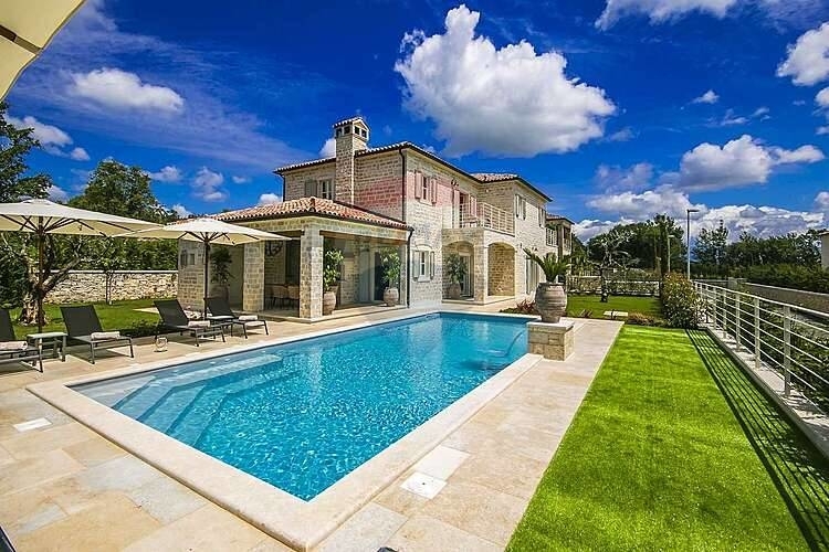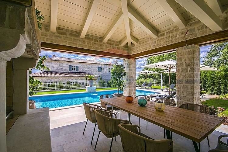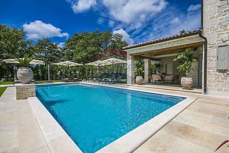 Bei Kanfanar, in einem exklusiven, Mini-Resort von insgesamt 4 Villen befindet sich dieses charmante Anwesen.Die Ausrichtung aller der 4 Villen ist mit Bedacht auf Privatsphäre und freien Ausblicks, insbesondere vom Pool- und Terrassenbereich aus, gelöst.