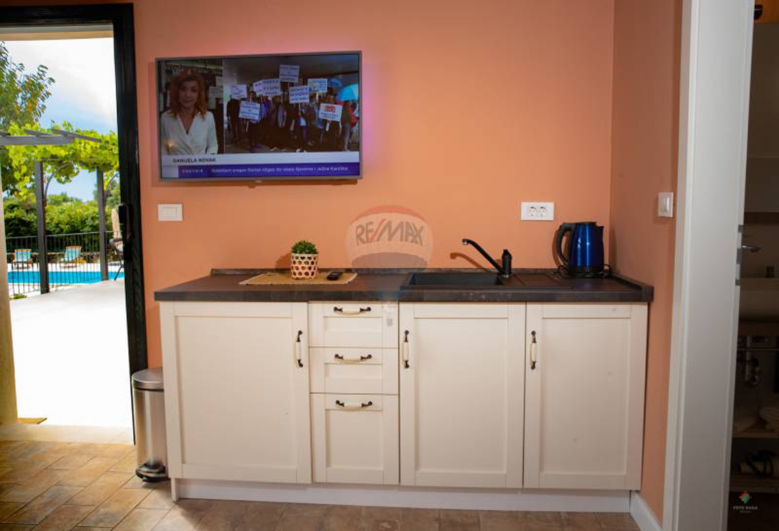 Dieses neue Haus liegt in ruhiger Randlage, nur 800 m vom Meer entfernt. Die zauberhafte Altstadt von Rovinj ist nur 2 km entfernt.Vor dem Haus erstreckt sich das große Grundstück von über 3000 m² und die angrenzende Natur. Hier sind Ruhe und Privatsphäre garantiert.