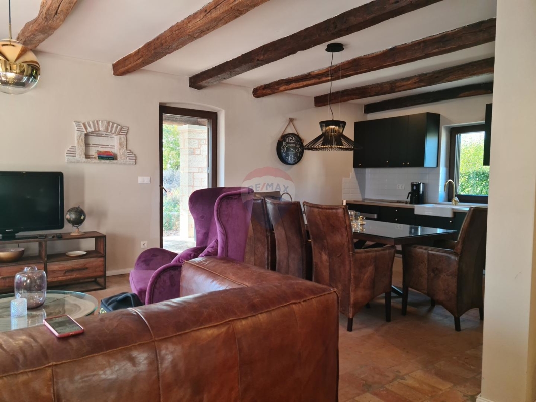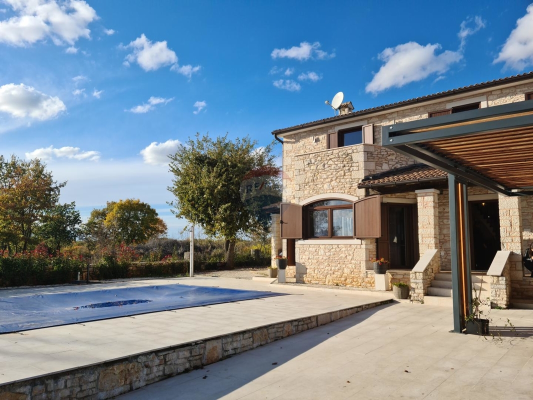 Virtuelle Führung: https://premium.giraffe360.com/remax-centarnekretnina/00e73385a5554407ae2f9981cf558e7c/Dieses charmante Ferienhaus wurde im typischem regionalem Stil mit viel Stein und Holzelementen erbaut. Es liegt in einem ruhigen Ort südöstlich von Porec. Die Randlage umgeben von Grün bietet Ihnen Privatsphäre und unverbaubaren Weitblick auf die Landschaft.