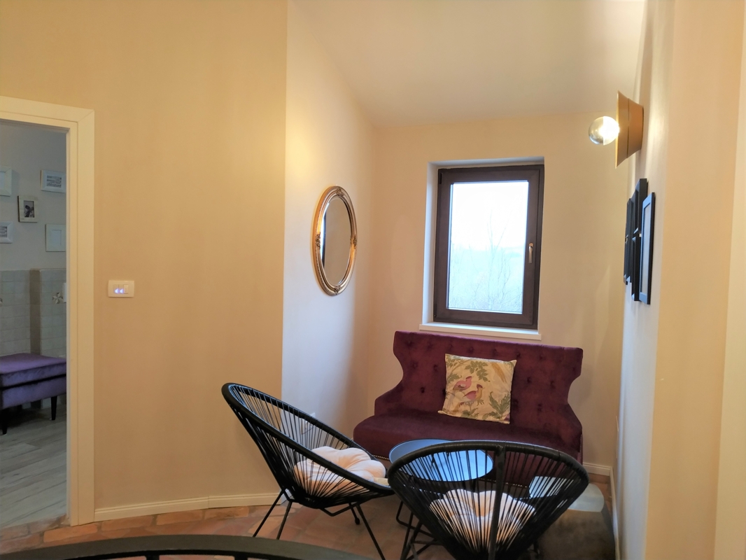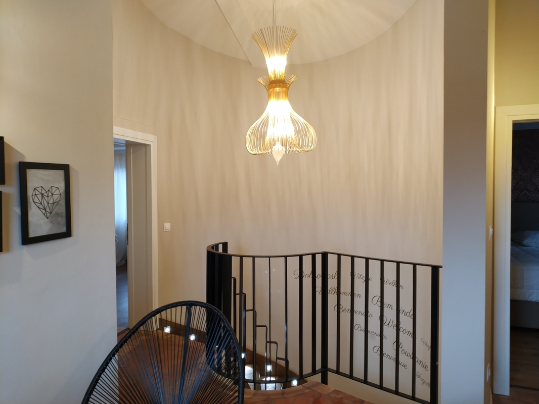 Im Obergeschoss befinde sich eine gemütliche Galerie, drei weitere Schlafzimmer und zwei Badezimmer. Aus einem Schlafzimmer gelangt man auf den Balkon mit offenen Weitblick ins Grüne.