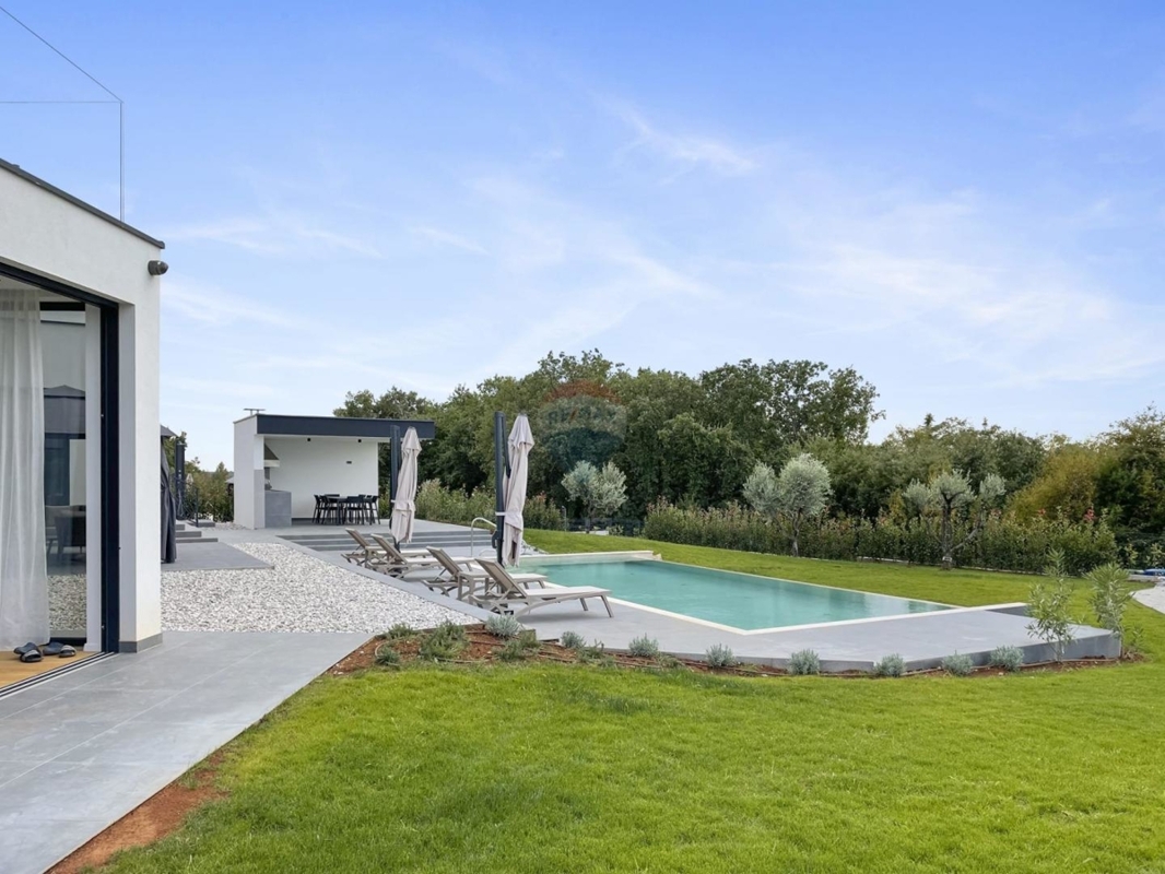 In einem ruhigen und kleinen Dorf in Umgebung von Porec liegt diese stilvolle Villa.Die Gesamtfläche von 230 m² verteilt sich auf drei Etagen: Keller, Erdgeschoss und Obergeschoss.
