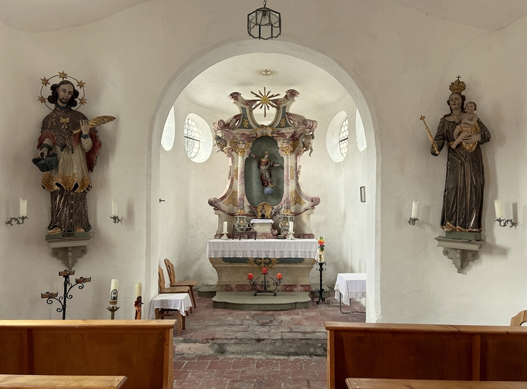 Auf dem Grundstück und zu einem Fünftel im Miteigentum gibt es die wunderbare barocke St. Nepomuk-Kapelle, ein einschiffiges Kirchlein mit Apsis und Empore, die das Mühlenanwesen zu einem spirituellen Ort voller Inspiration macht.