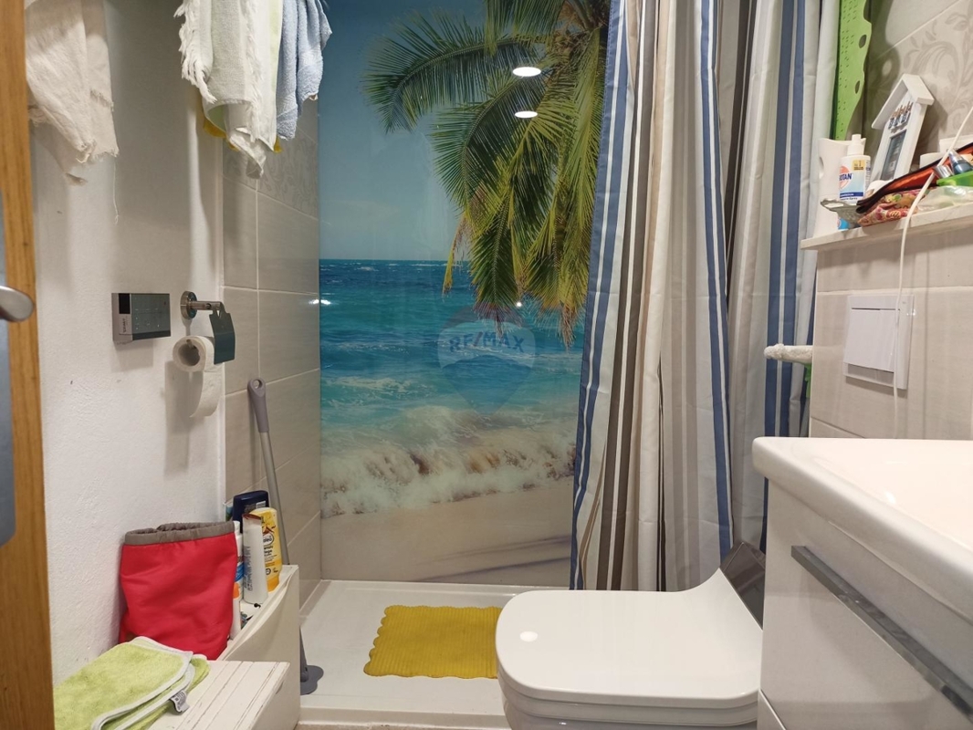 Das Erdgeschoss besteht aus einer Küche und Essbereich, einem Abstellraum und Bad. Im Obergeschoss befinden sich ein Wohnbereich, Küche, zwei Schlafzimmer und ein Bad. Vom Wohnbereich aus gelangen Sie auf die 15 m² große Terrasse mit herrlichem Panoramaausblick auf das Meer.