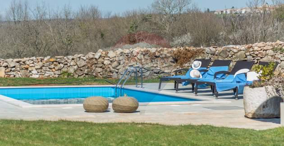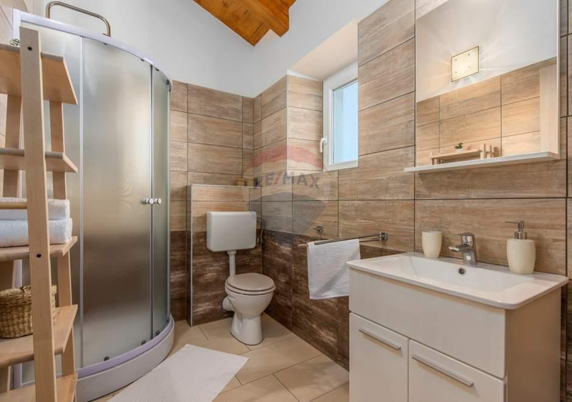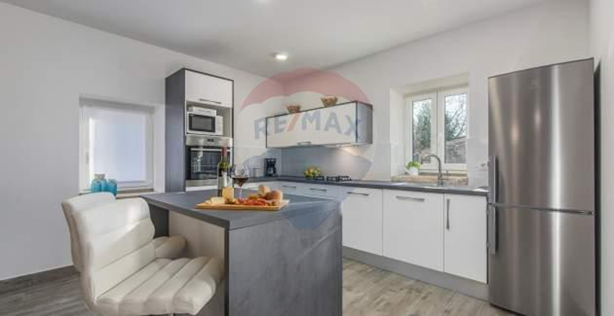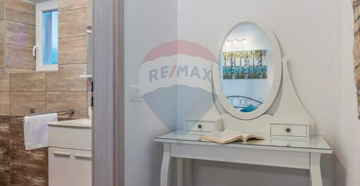 Umgebung von Porec, Gemeinde Sv. Lovrec – ca. 20 Fahrminuten von Porec oder Vrsar entfernt, ca. 25 Fahrminuten bis nach Rovinj, 3 km zum Limski Fjord und zum Meer.Ausstattung: