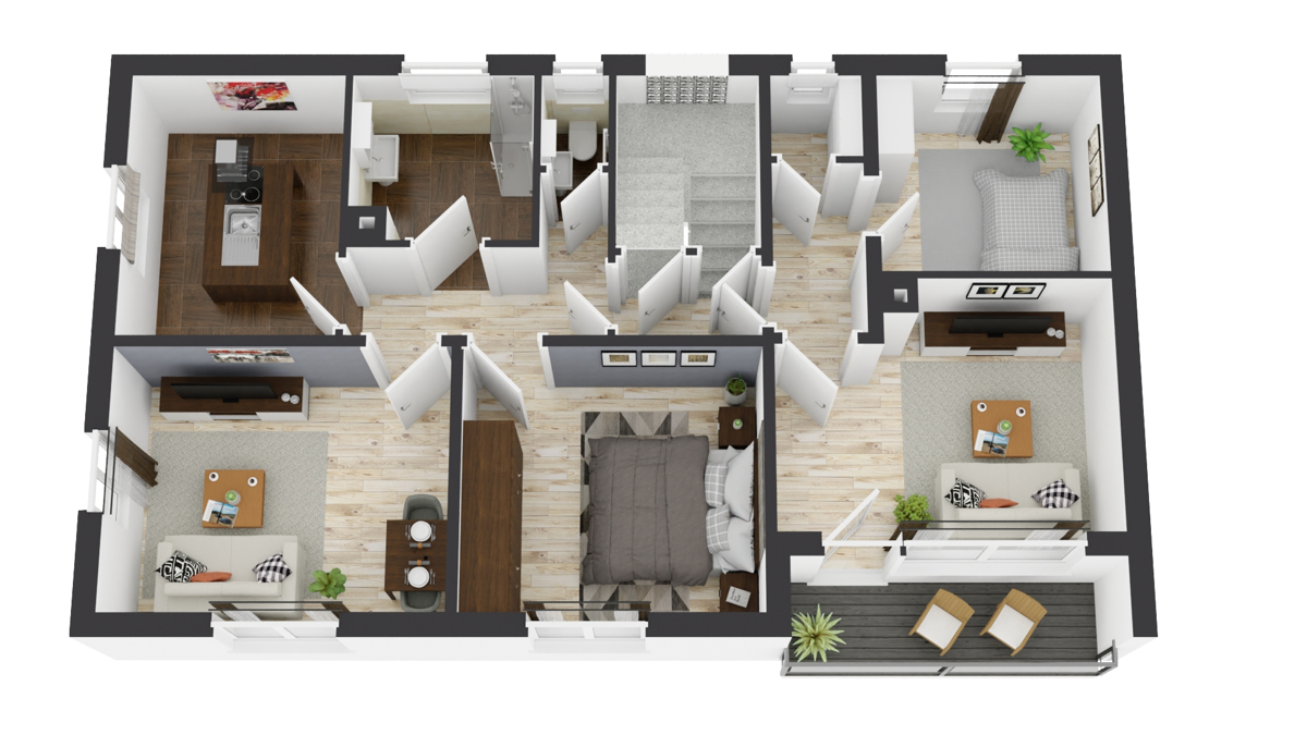 Das Erdgeschoss bietet inklusive dem separaten Zimmer eine Wohnfläche von ca. 63 m².