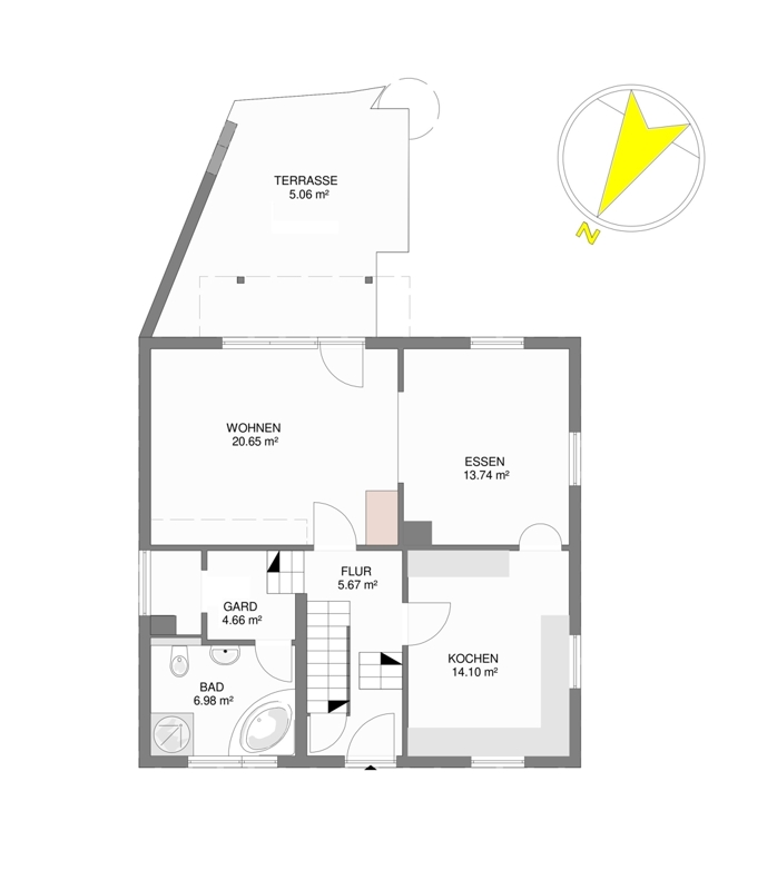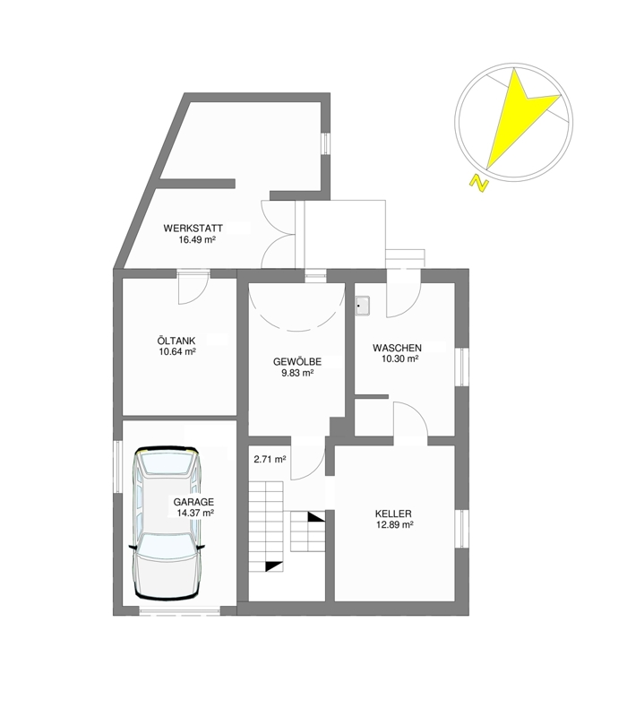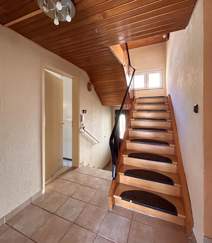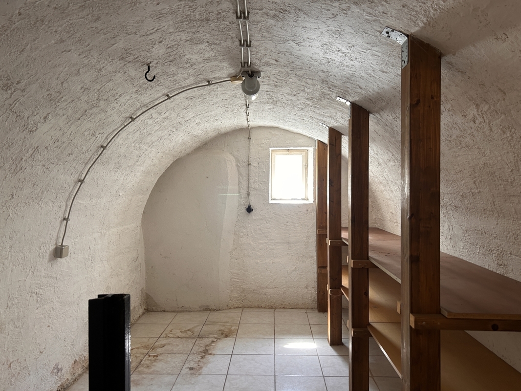 Im Keller ein Gewölbekeller, zwei Nutzkeller, die Garage und von außen zugänglich die Werkstatt (unter der Terrasse) und ein Lagerraum für Öl. Zuletzt wurden das Dach, die Fenster und das Bad erneuert.