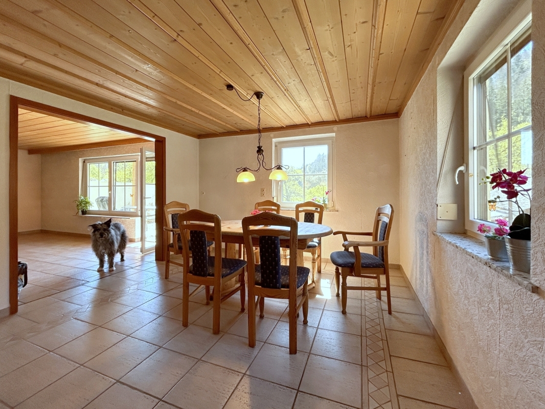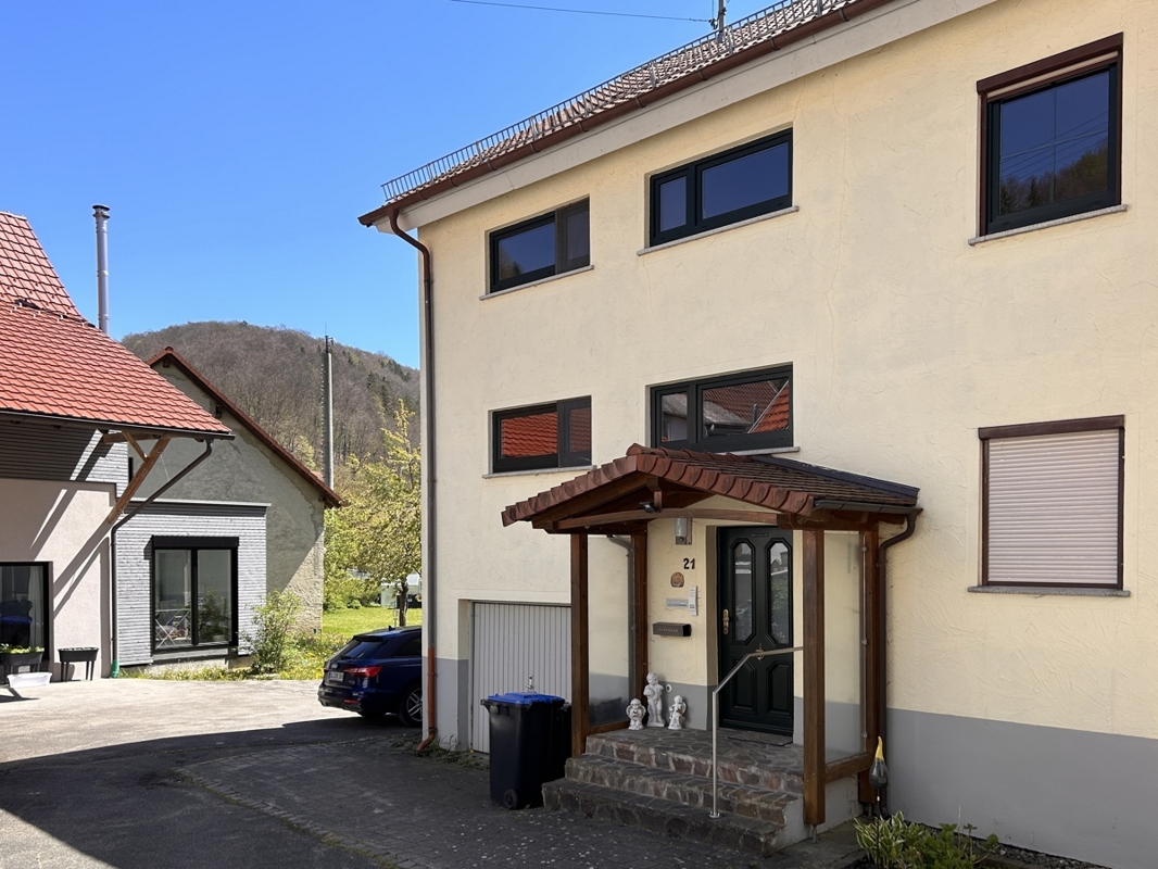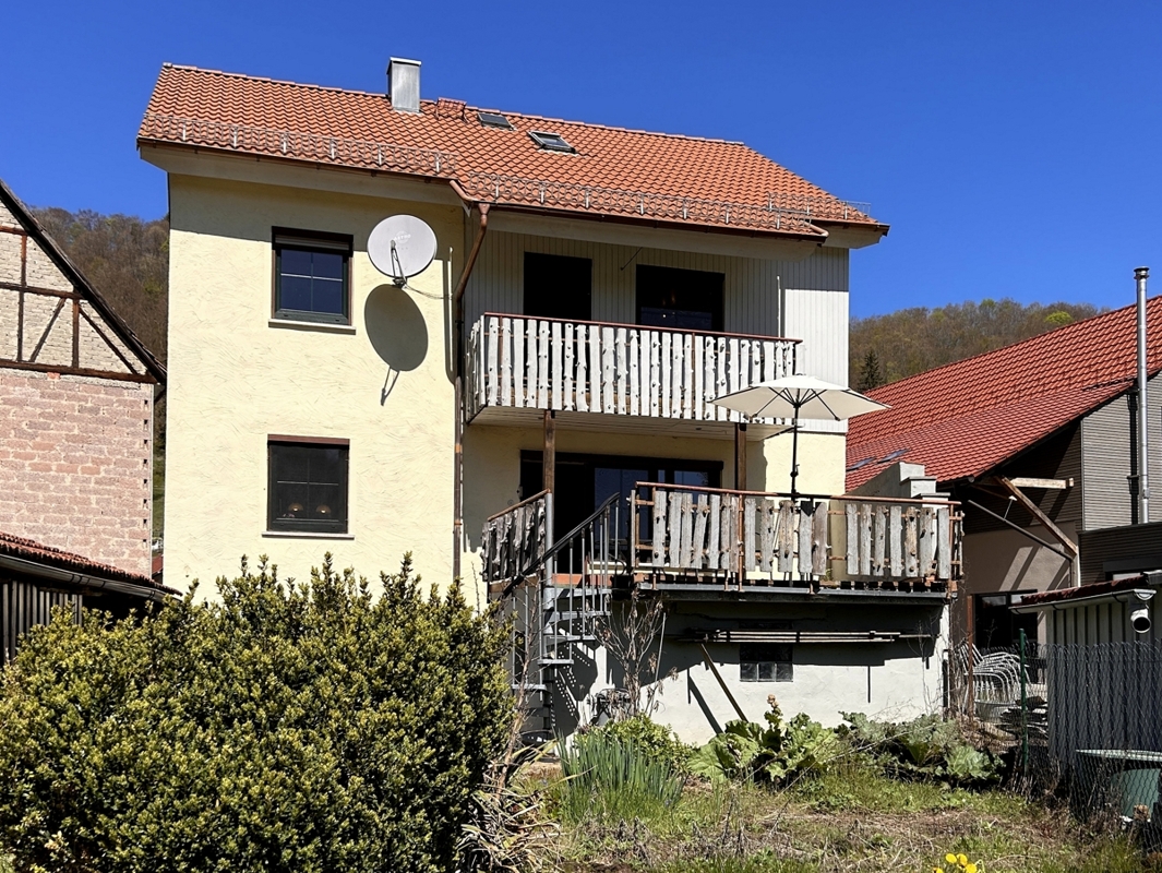Das Haus am südlichen Ortsrand von Hütten mit großer Terrasse bietet einen herrlichen Ausblick ins Biosphärenreservat Schmiechtal. Das Haus wurde ab 1967 auf einem älteren Gebäude aufgebaut. Das Erdgeschoß bietet einen großen Wohn-Essbereich mit Zugang zur Terrasse, die Küche und einige Stufen höher das Bad. Das OG bietet einen Wohnbereich mit zwei Zimmern, ein großes Schlafzimmer mit Balkonzugang und (wieder im Splitlevel) ein weiteres Zimmer und ein WC.Im DG ist ein Zimmer ausgebaut, ein weiteres kann als Dachraum oder evtl. durch Einbau eines Dachflächenfensters als Zimmer genutzt werden, Kinder werden es lieben.