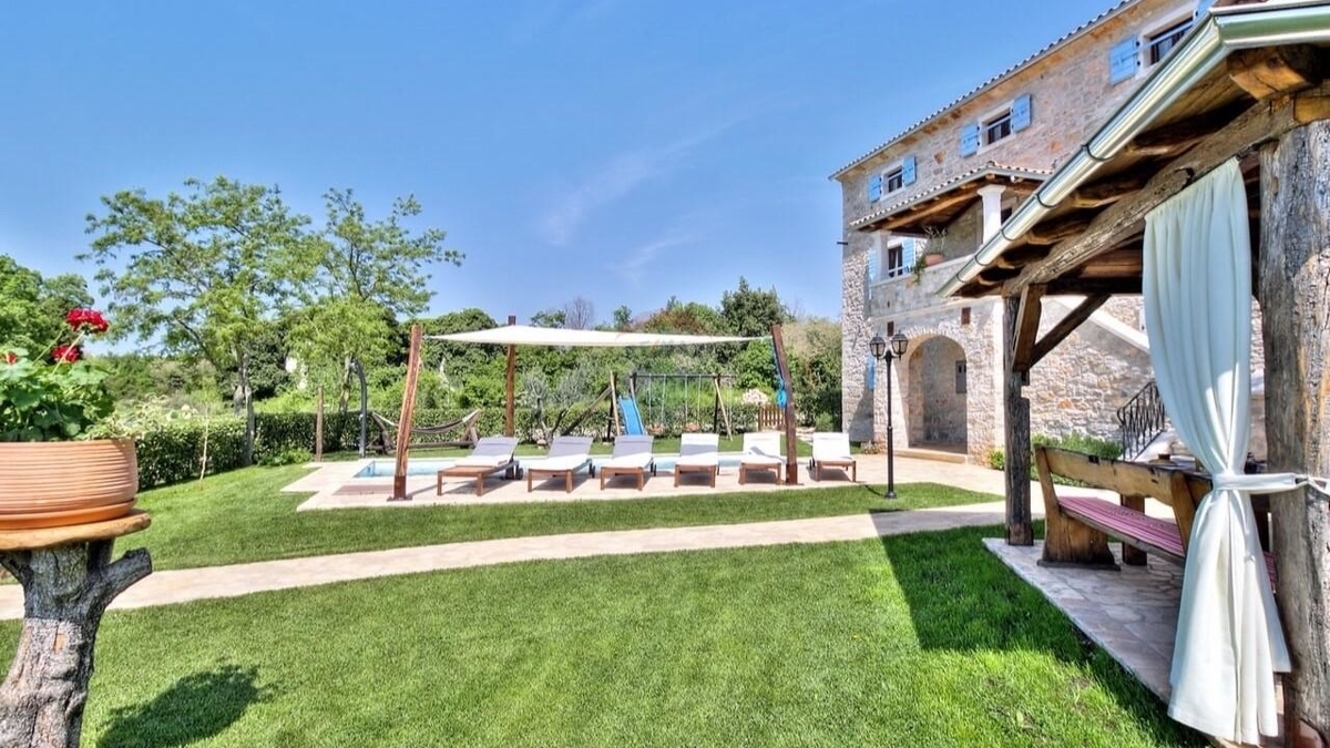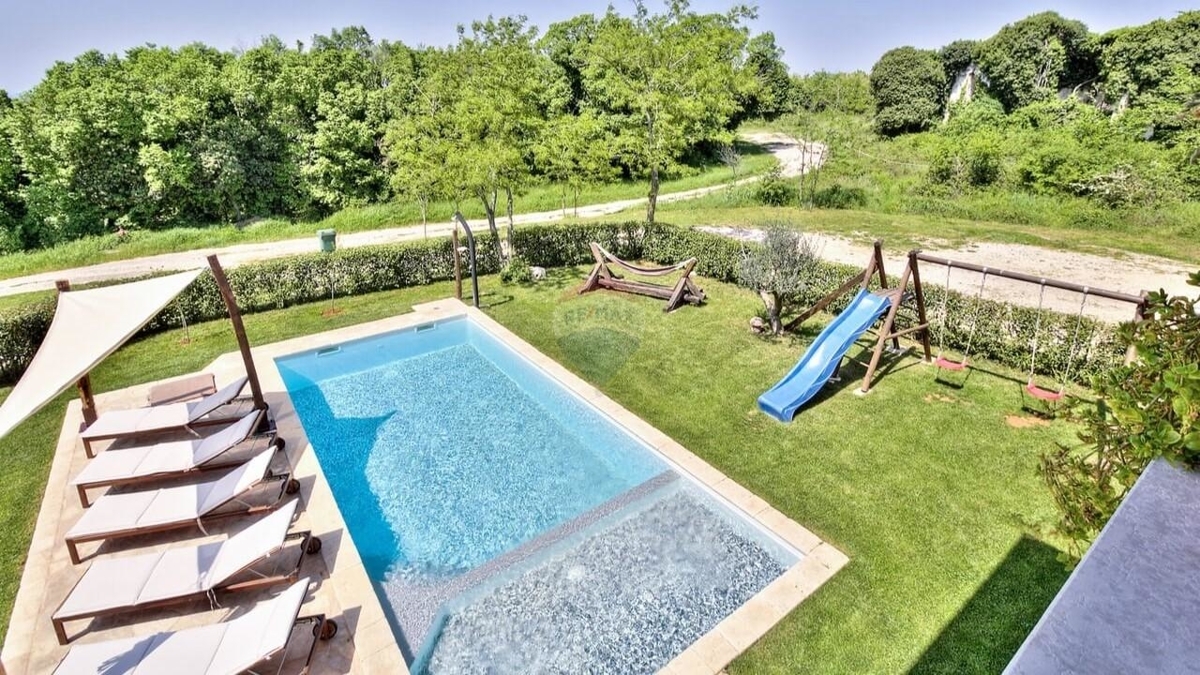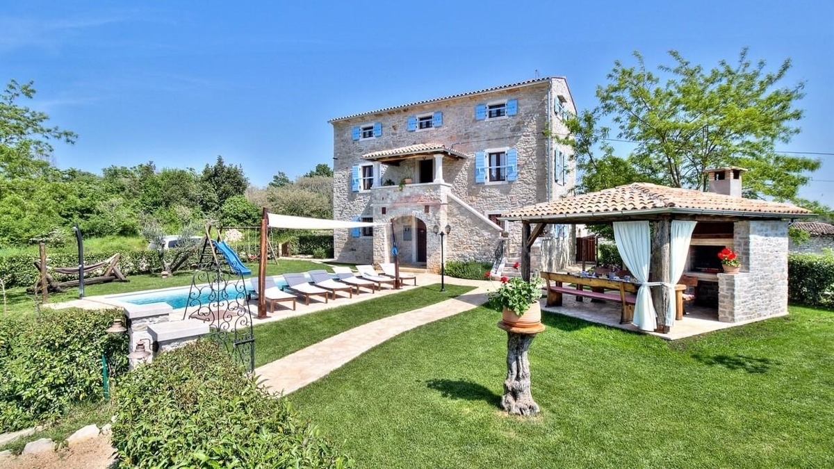 In einer idyllischen Umgebung, nur 3,5 km vom Meer entfernt liegt diese charmante istrische Villa.Die Lage am Rand des keines Ortschafts bietet Ihnen Ruhe und Privatsphäre. Sie genießen den freien Blick auf die Natur und, bei klaren Tagen, bis zum Meer hinaus.