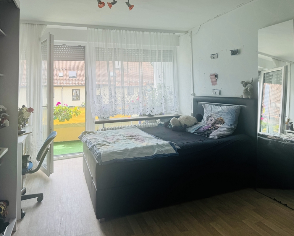Eine großzügige, renovierungsbedürftige 4-Zi.-Wohnung in Schelklingen, im 2. OG eines Mehrfamilienhauses mit 7 Wohneinheiten.Aufgeteilt ist die Wohnung in ein großzügiges Wohn-/Esszimmer mit Zugang zum sonnigen Südbalkon, großes Schlafzimmer, 2 Kinderzimmer, Gäste-WC, ein Bad, eine Küche mit Einbauküche und nebenan Zugang zum zweiten Balkon. Auch aus Wohn- und Schlafzimmer hat man Zugang zu dem großzügigen Balkon.