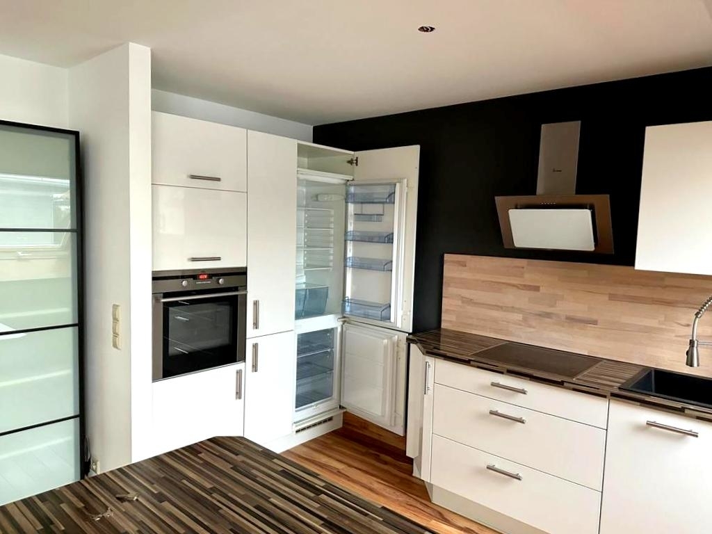 Im 3.OG ist der großzügige, offen gestaltete Wohn- und Essbereich mit Zugang zum Balkon sowie ein Kochbereich mit kompletter EBK, sowie das Gäste-WC mit Dusche untergebracht.