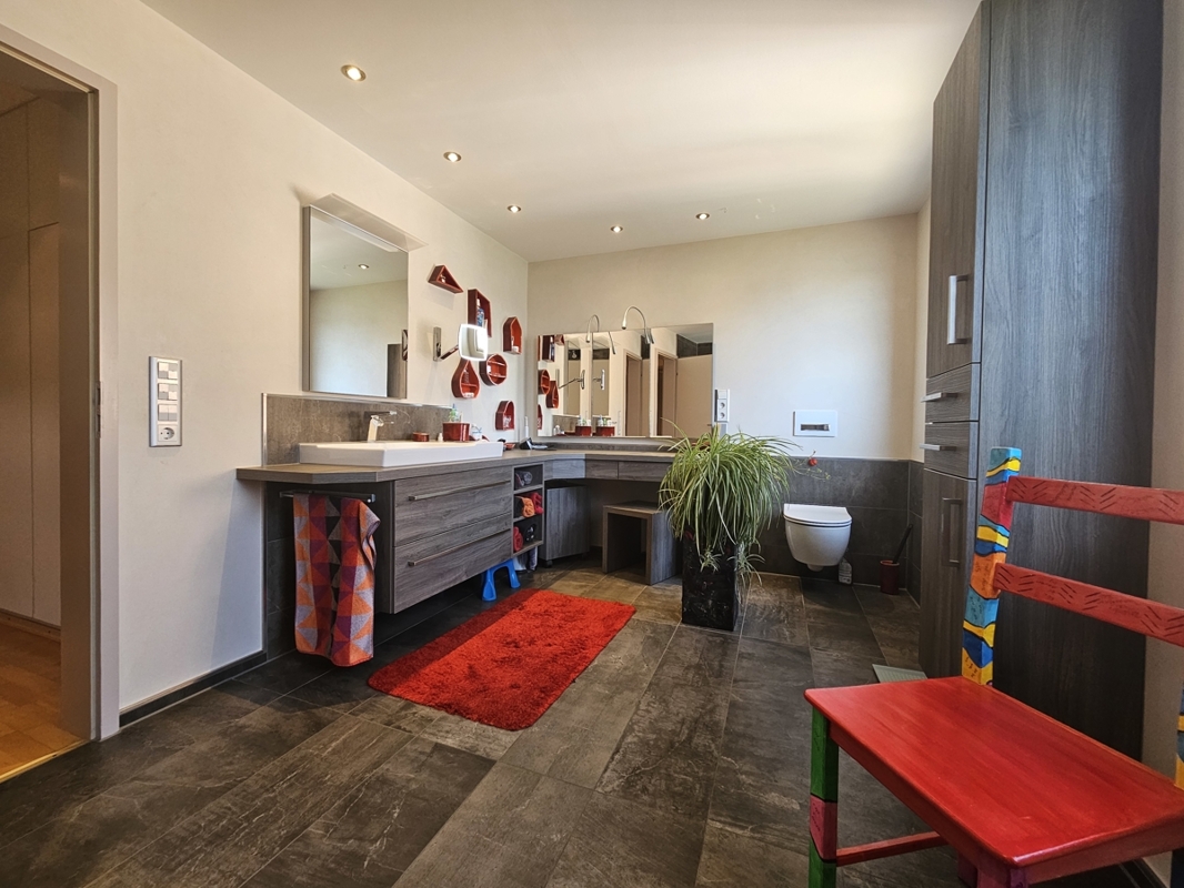 Mit Liebe zum Detail und kontinuierlicher Pflege wurden im und am Haus laufend Renovierungen vorgenommen, so dass das Haus heute ein sehr gepflegtes Erscheinungsbild bietet. Für Ihren Fuhrpark steht eine großzügige Doppelgarage mit zwei Stellplätzen davor zur Verfügung.