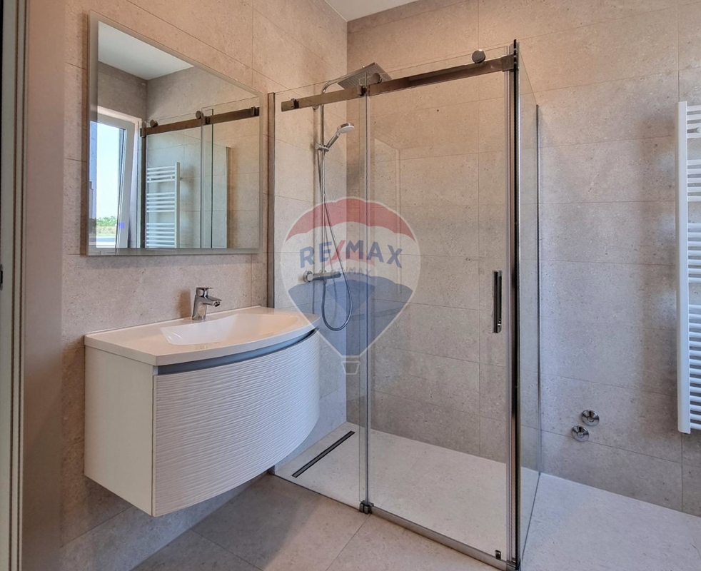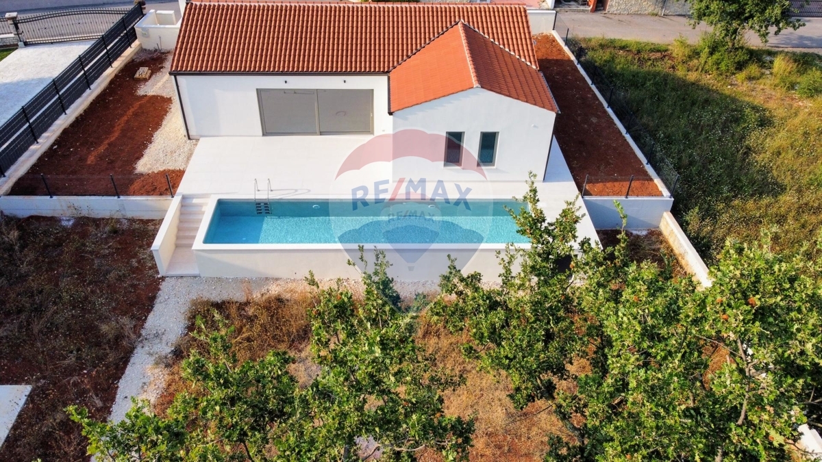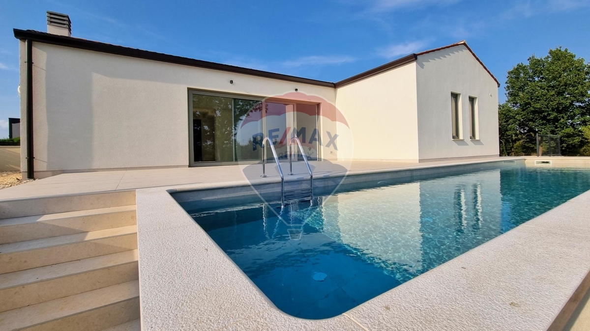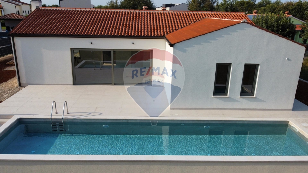 In einem istrischem kleinen Ort, in einer schönen ländlichen Umgebung von Porec wurde dieses interessante Haus erstellt. Die Randlage – am Ende des Baugebiets bietet Privatsphäre und einen schönen unverbaubaren Freiblick auf die Natur.Das Freistehende Haus bietet auf 110 m² Fläche ein offenes Wohn- und Essbereich mit Küche, drei Schlafzimmer, davon ein mit eigenem Bad, insgesamt zwei Bäder und eine große Terrasse.