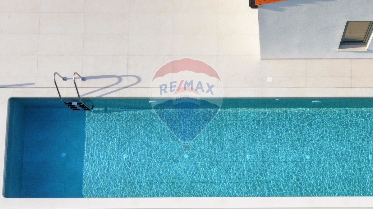 Im Außenbereich gibt es viel Gartenfläche, eine 50 m² große Terrasse und einen 12 x 3 m großen Pool.