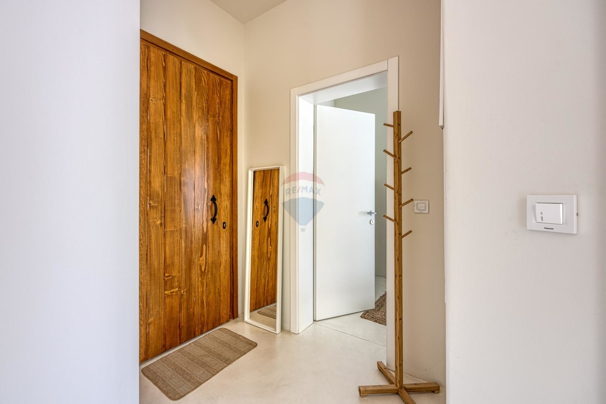 In einer familiären und ruhigen Umgebung der Stadt Krk liegt diese interessante neue Villa. Die Lage bietet sich ideal sowohl für das ganzjährige Wohnen als auch als Feriendomizil.Die moderne Architektur ist mit Bedacht konzipiert möglichst viel Funktionalität und Komfort zu bieten.