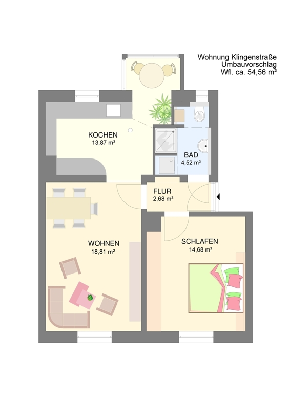 Die Ausstattung ist einfach, 2-Scheiben-Holzfenster, Bodenbeläge Teppich, Wände tapeziert. Die Wohnung ist zu renovieren und dabei evtl. auch umzubauen, weil der aktuelle Grundriss kaum zeitgemäße Wohnbedürfnisse befriedigt.Sie wollen mehr erfahren?