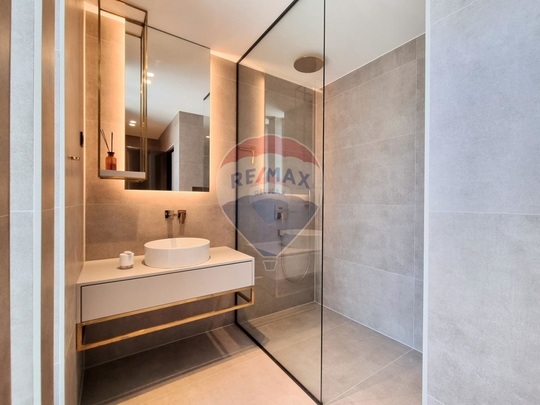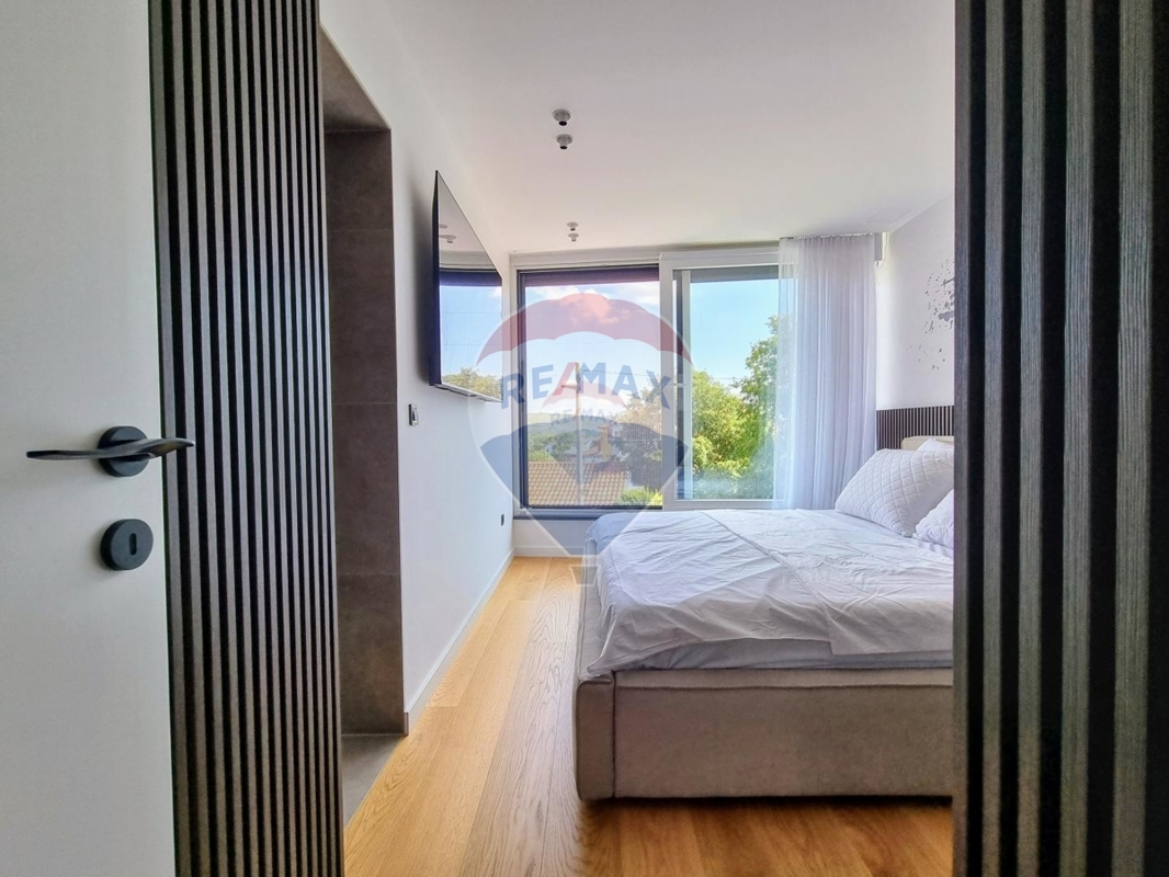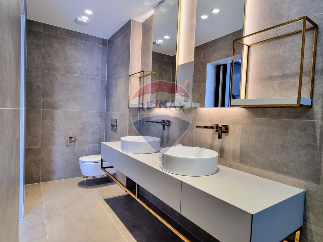 Im Obergeschoss befinden sich vier geräumige Schlafzimmer, jedes mit einem eigenen Bad. Alle Zimmer verfügen über hochwertige Wandverkleidungen mit Designertapeten, Einbauschränken, modernen Doppelbetten (180x200 cm) und Fernseher mit einer Bildschirmdiagonale von 164 cm.