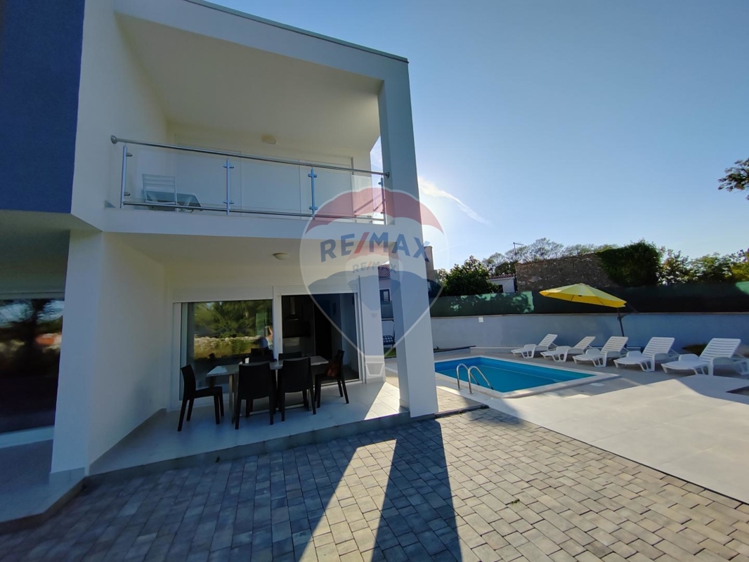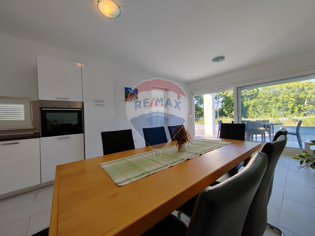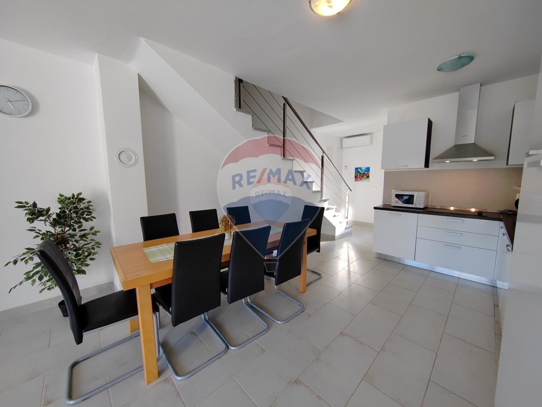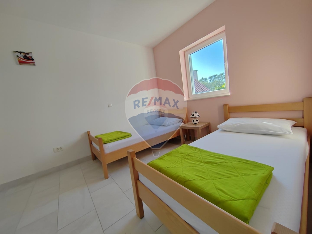 In einer ländlichen Umgebung, am Rand eines kleinen Orts auf der Insel Krk liegt dieses neue Ferienhaus. Die moderne Doppelhaushälfte ist unscheinbar in der Nachbarschaft, der teileweisen alten Steinhäusern, eingebettet. Von der Terrasse und Balkon aus genießen Sie den Blick ins Grüne.