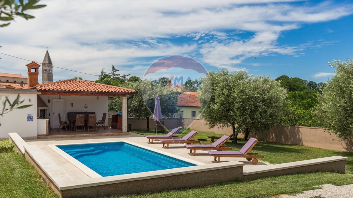 In einer ruhigen Ortschaft in der Umgebung von Porec liegt dieses schöne Ferienhaus.Auf 110 m² reinen Innenfläche bietet es Ihnen drei Schlafzimmer, zwei Bäder, eine Küche, ein Esszimmer und ein Wohnzimmer mit direktem Zugang zur Terrasse und Außenbereich.