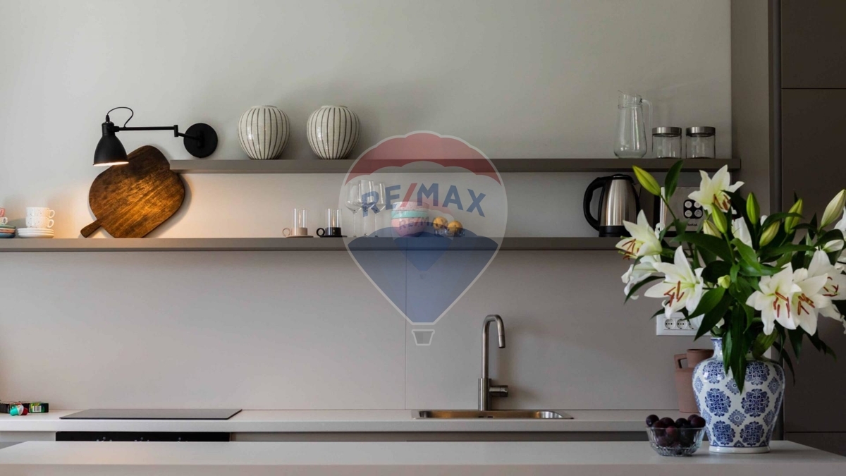 Die Wohnfläche von 150 m² verteilt sich auf einer Etage: Eine große Küche und Esszimmer verbunden mit dem Wohnbereich, drei Schlafzimmer mit eigenen Bädern sowie eine Gästetoilette. Von der Küche aus gelangen Sie auf die große überdachte Terrasse.